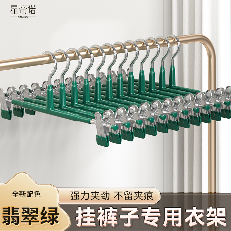 • 에메랄드 그린 [플라스틱 담근 트레이스리스 클립✔접이식 및 조절 가능] 새로운 가정용 바지걸이