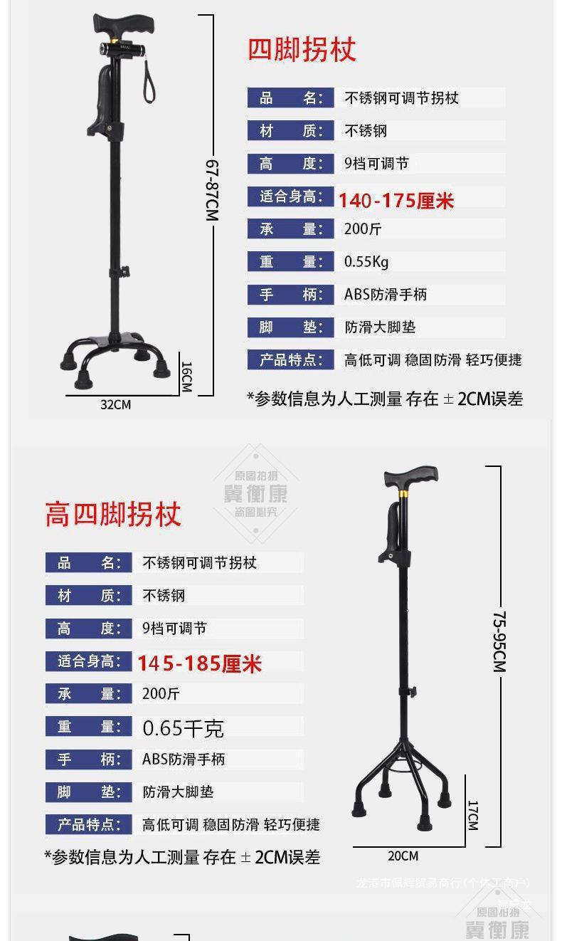 노인을위한 목발 안정적인 안티-가을 슬라이딩 목발 휴대용 개폐식 지팡이 다기능 네 다리 노인