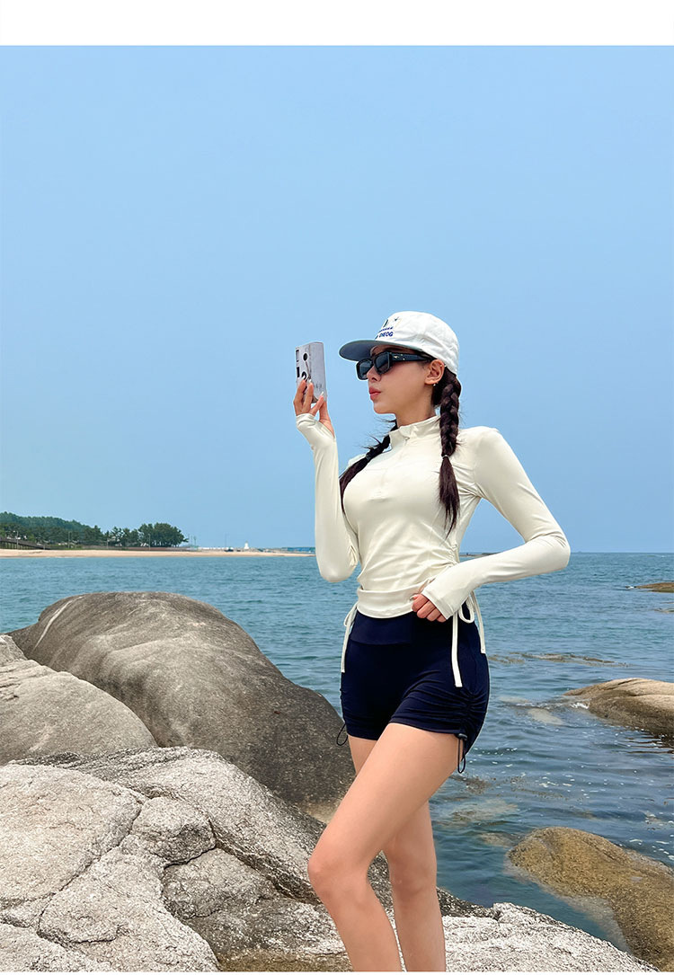 태양 방지 긴팔 높은 칼라 보수적 인 지퍼 외부 셔츠 타이트 슬림 핏 플랫 복서 분할 수영복 여성용 서핑 다이빙 세트스토어 가기