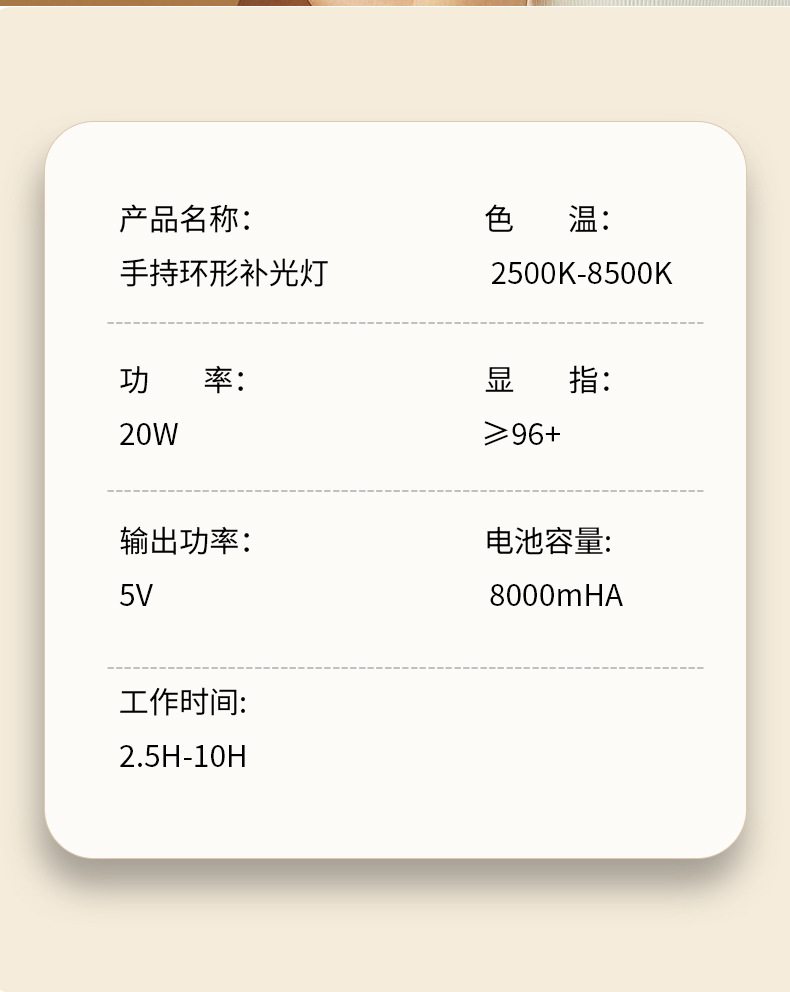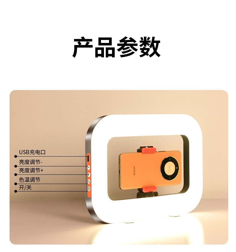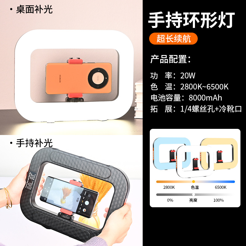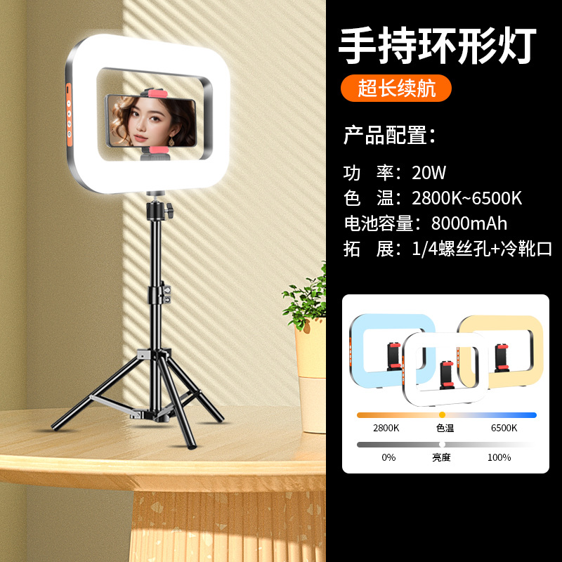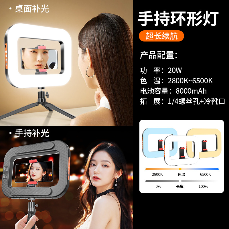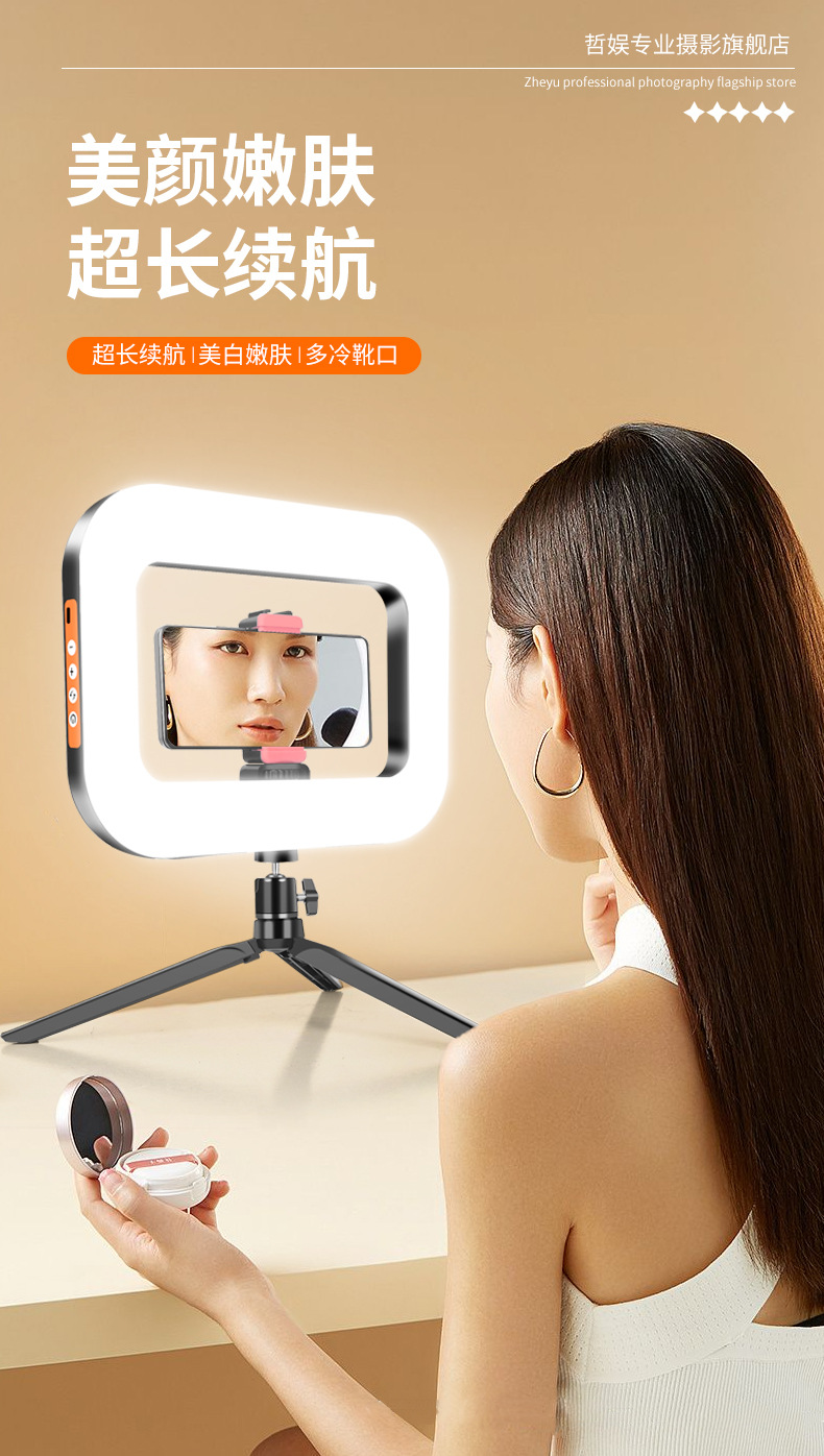 휴대용 링 필 라이트 휴대용 휴대 전화 라이브 방송 충전 사진 조명 데스크탑 토끼 케이지 셀카 라이브 방송 특수 조명