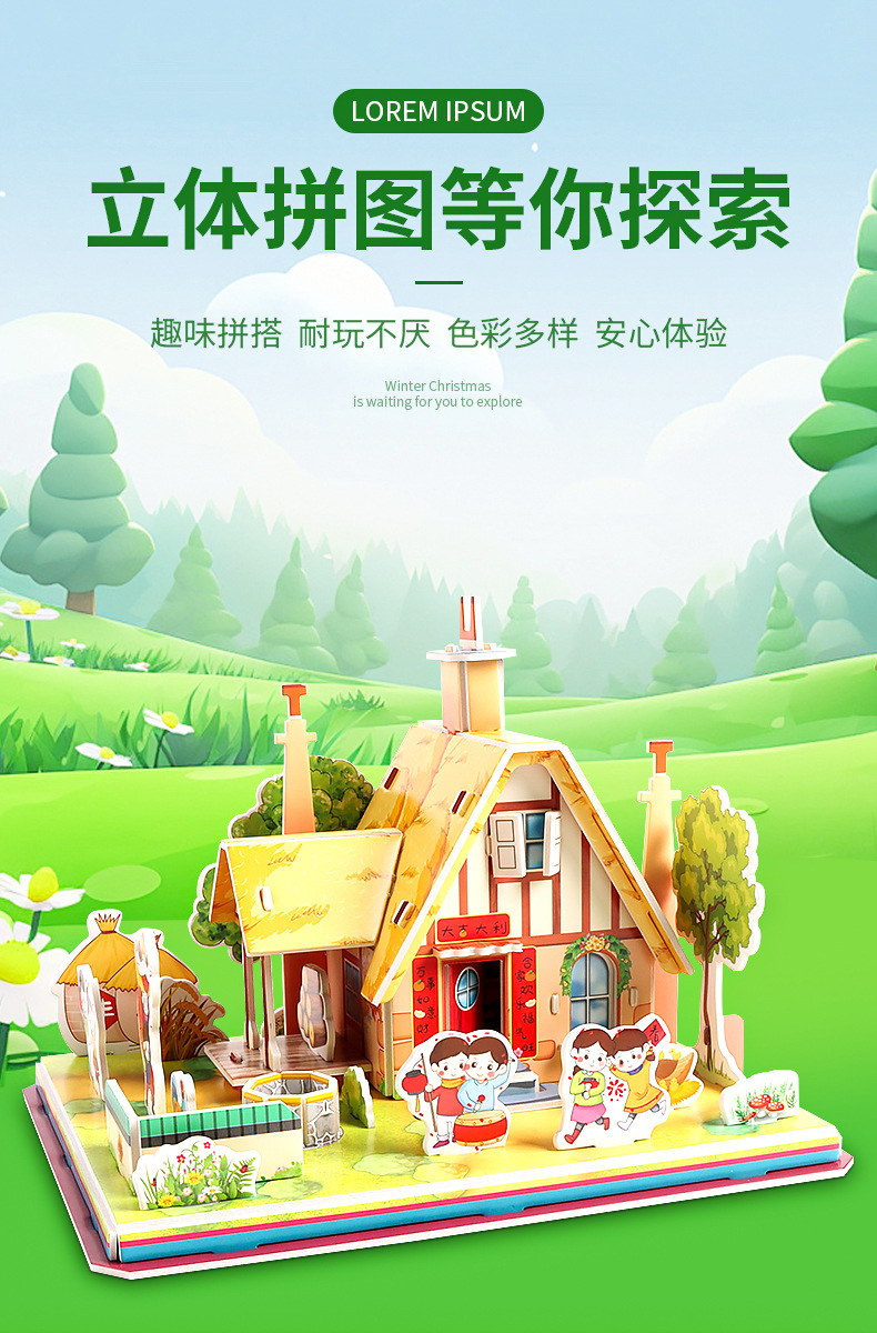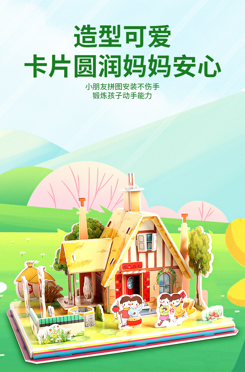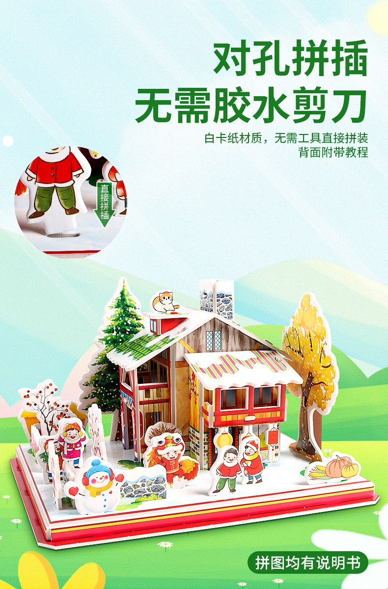 새해 시리즈 Xuexiang 새해 수확 새해 3 차원 퍼즐 어린이 수제 스티칭 퍼즐 장난감스토어 가기