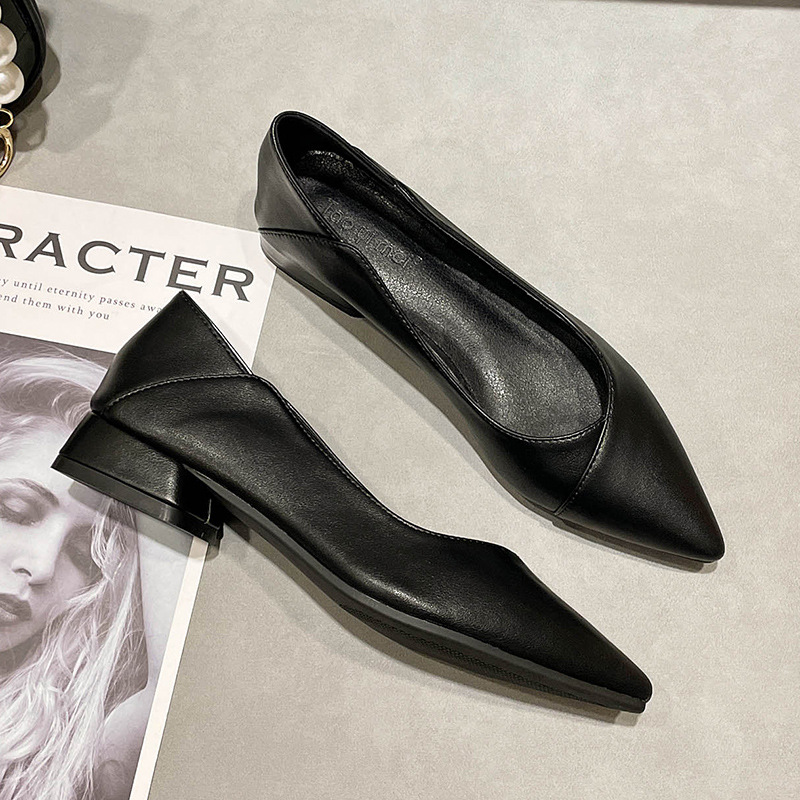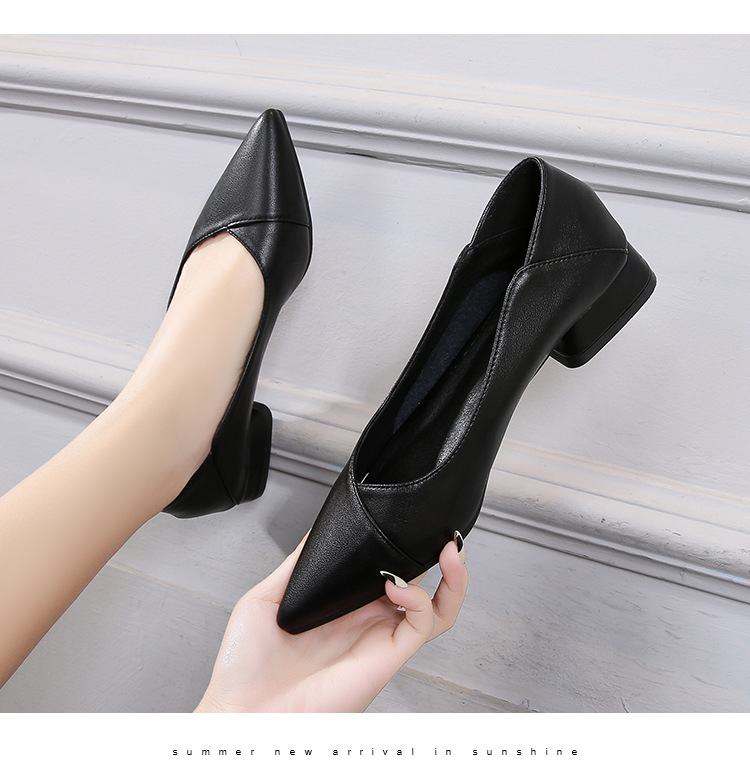 부드러운 가죽 작업 신발 여성의 검은 작업 오래 서 피곤하지 않은 발 툴링 두꺼운 힐 싱글 레이어 신발 여성용 올매치 소프트 밑창 가죽 신발