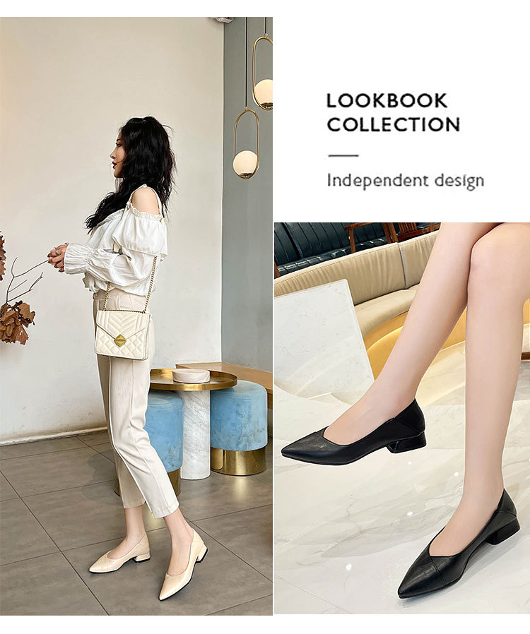 부드러운 가죽 작업 신발 여성의 검은 작업 오래 서 피곤하지 않은 발 툴링 두꺼운 힐 싱글 레이어 신발 여성용 올매치 소프트 밑창 가죽 신발스토어 가기