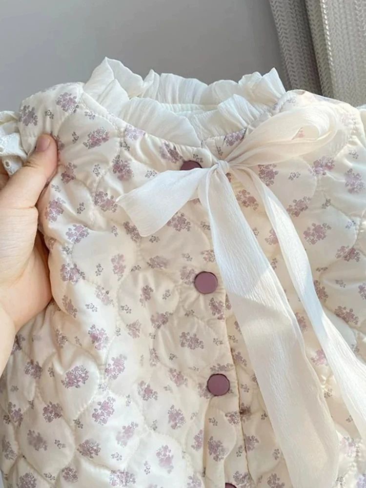 여자 겨울 조끼 아기의 서양식 어린이 맞춤형 유행 꽃 달콤한 활 두꺼운 한국 스타일 창고 재킷