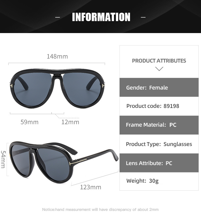 2024 국경 패션 큰 프레임 T 자형 고글 비행가 선글라스 트렌드 레트로 선 스크린 선글라스