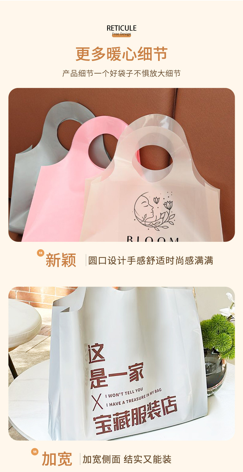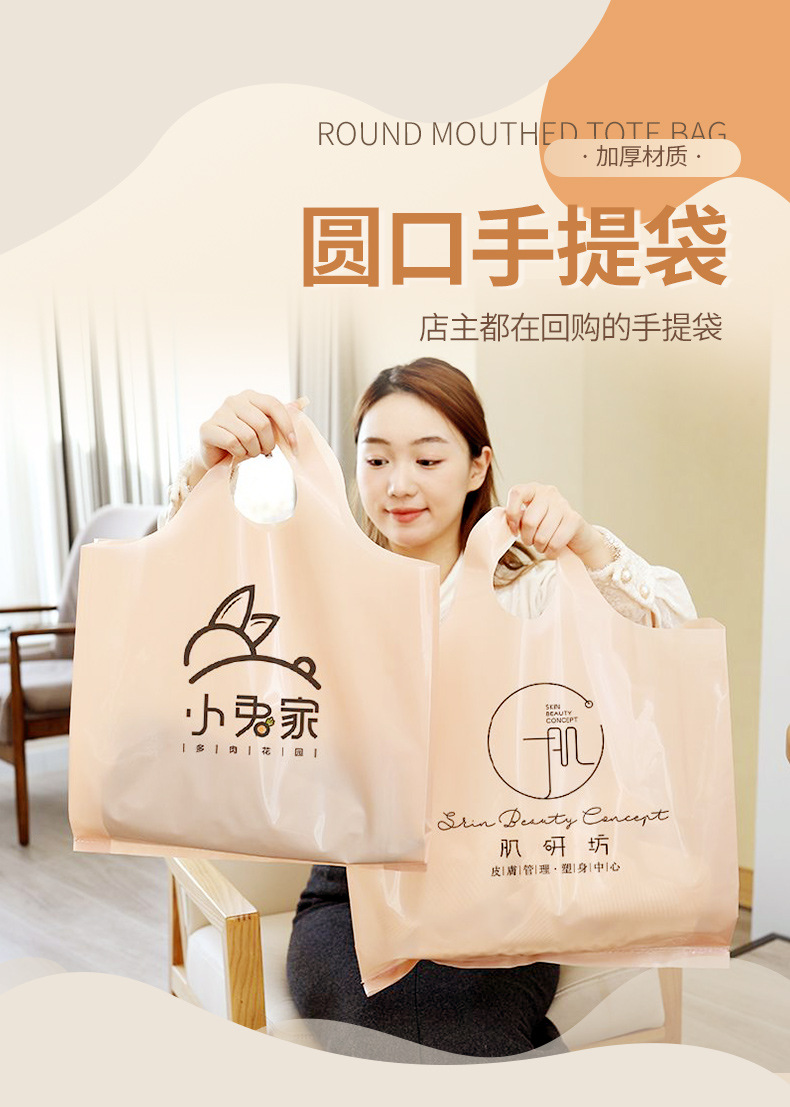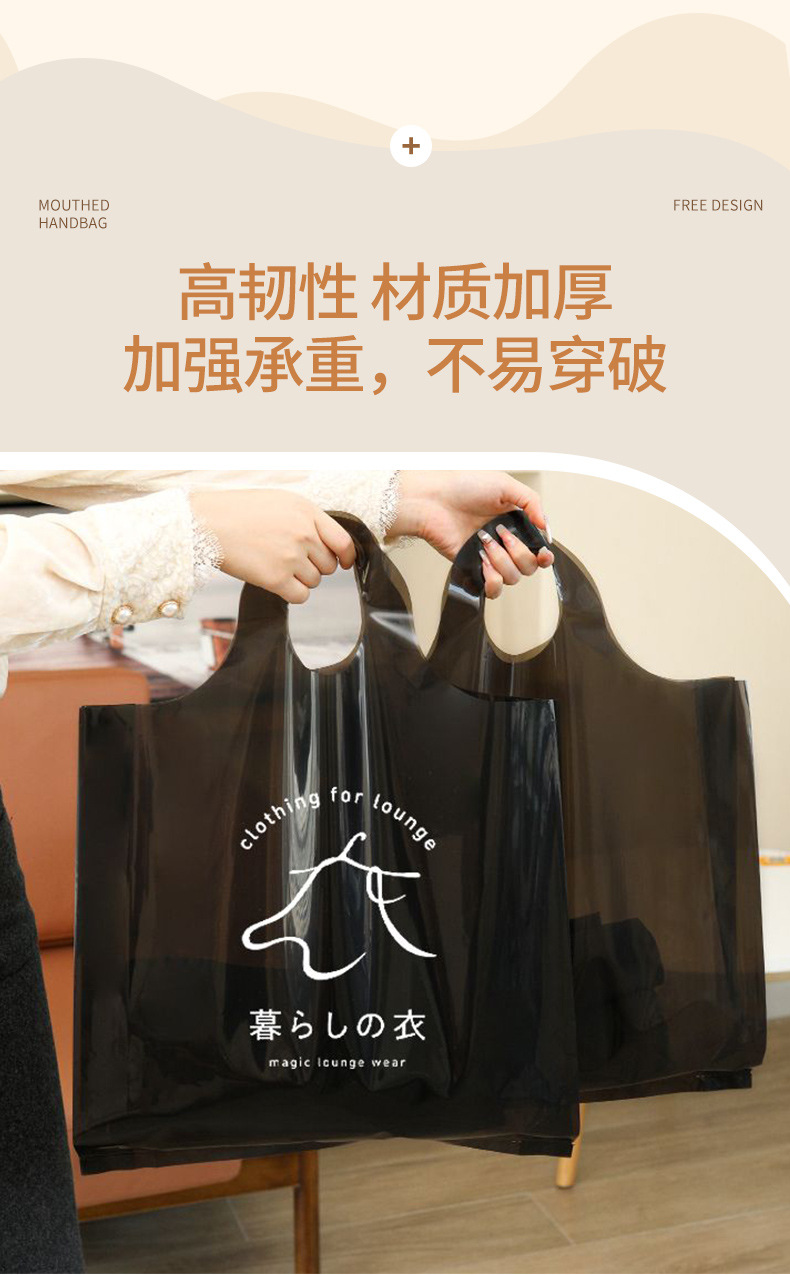 의류 매장 핸드백 여성 포장 가방 라운드 입 쇼핑 선물 가방 두껍게 플라스틱 휴대용 의류 가방 도매스토어 가기