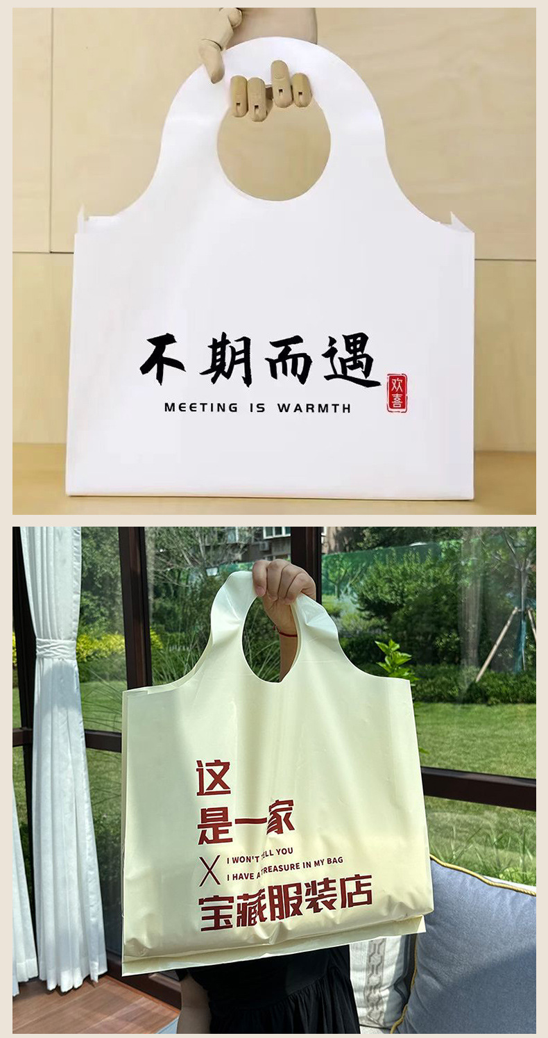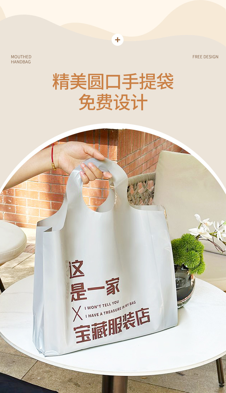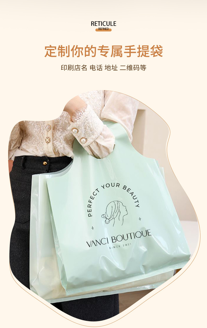 의류 매장 핸드백 여성 포장 가방 라운드 입 쇼핑 선물 가방 두껍게 플라스틱 휴대용 의류 가방 도매스토어 가기