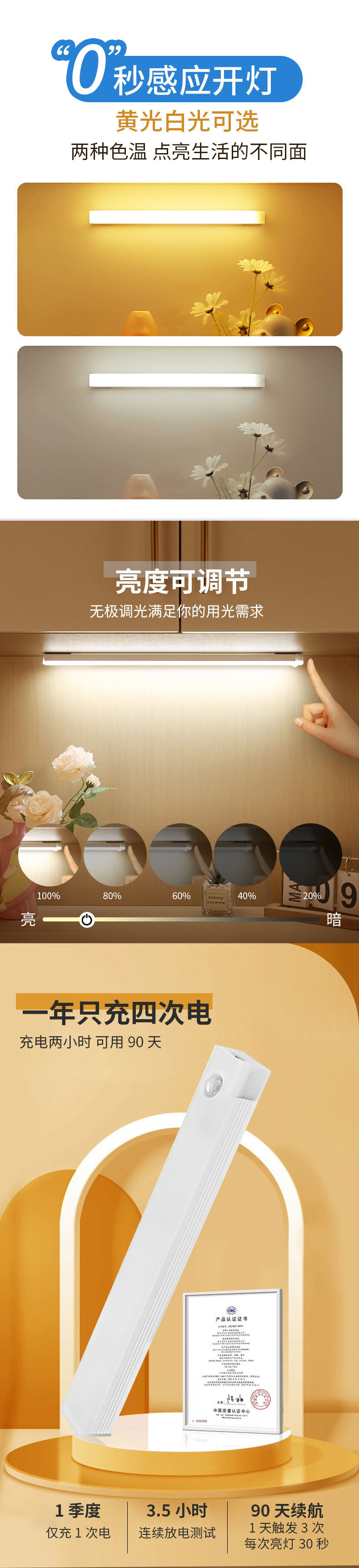 • 10cm 길이의 충전식 노란색 표시등 [센서 + 항상 켜짐]♢★