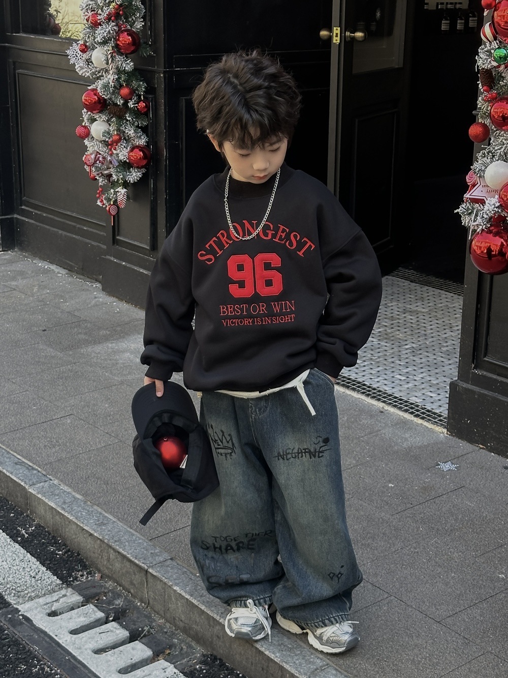 Xiner 2024 Winter New Graffiti 인쇄 기모 청바지 느슨한 스트레이트 원피스 벨벳 바지 소년 올매치