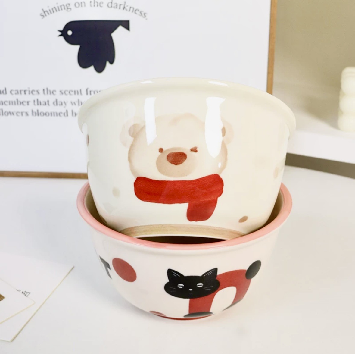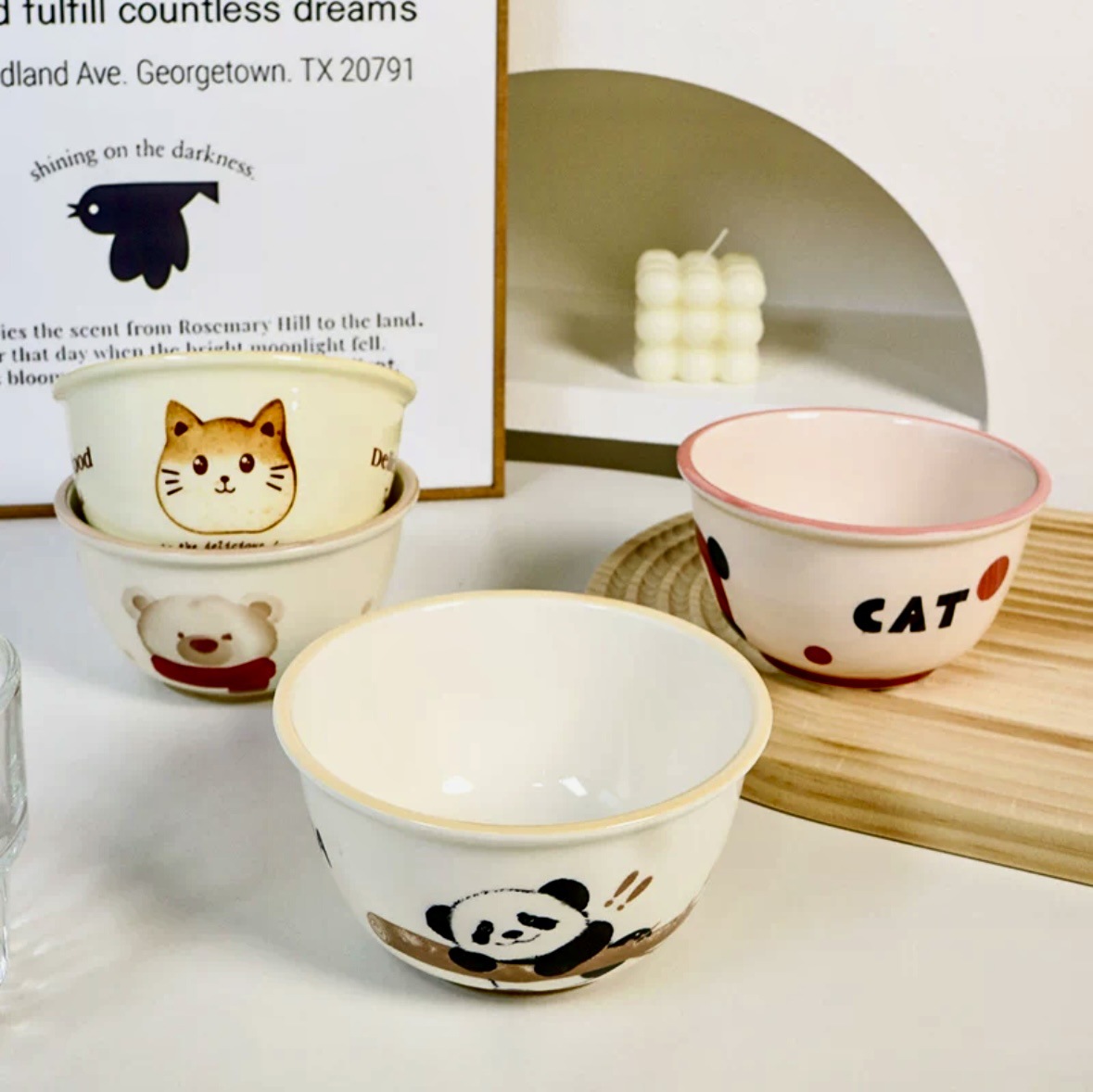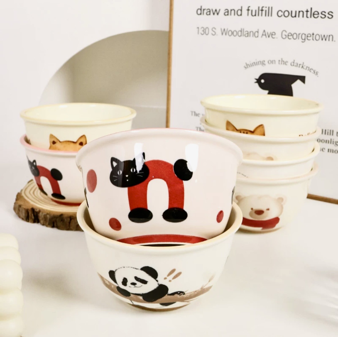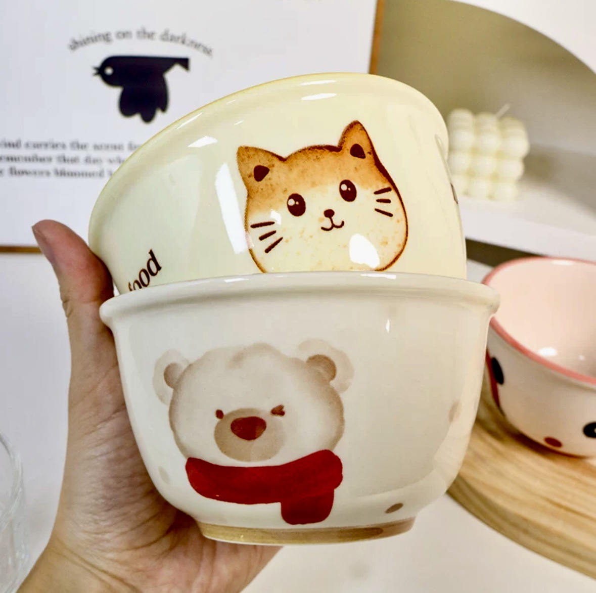 도매 4.5 인치 밥 그릇 세라믹 홈 그릇 새해 휴일 그릇 세트 귀여운 먹는 그릇 만화 스타일스토어 가기