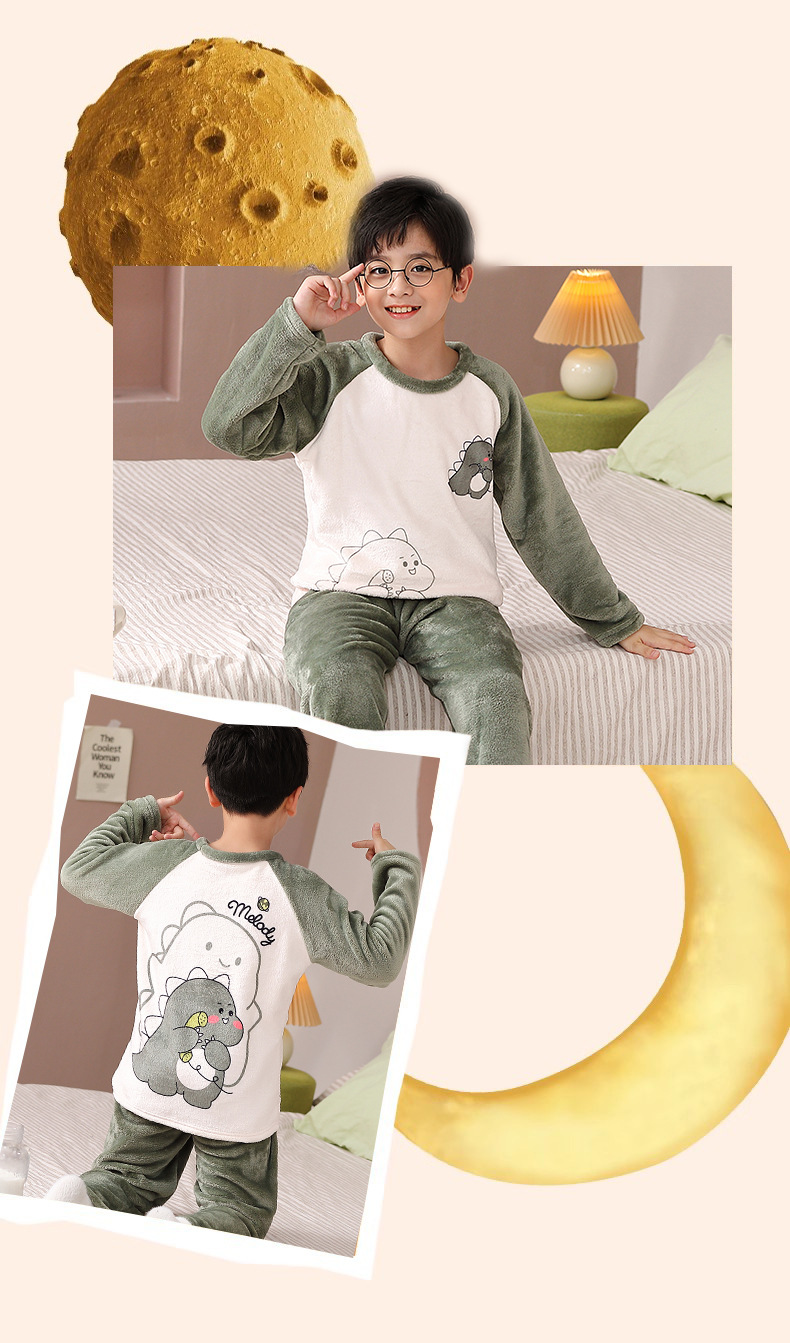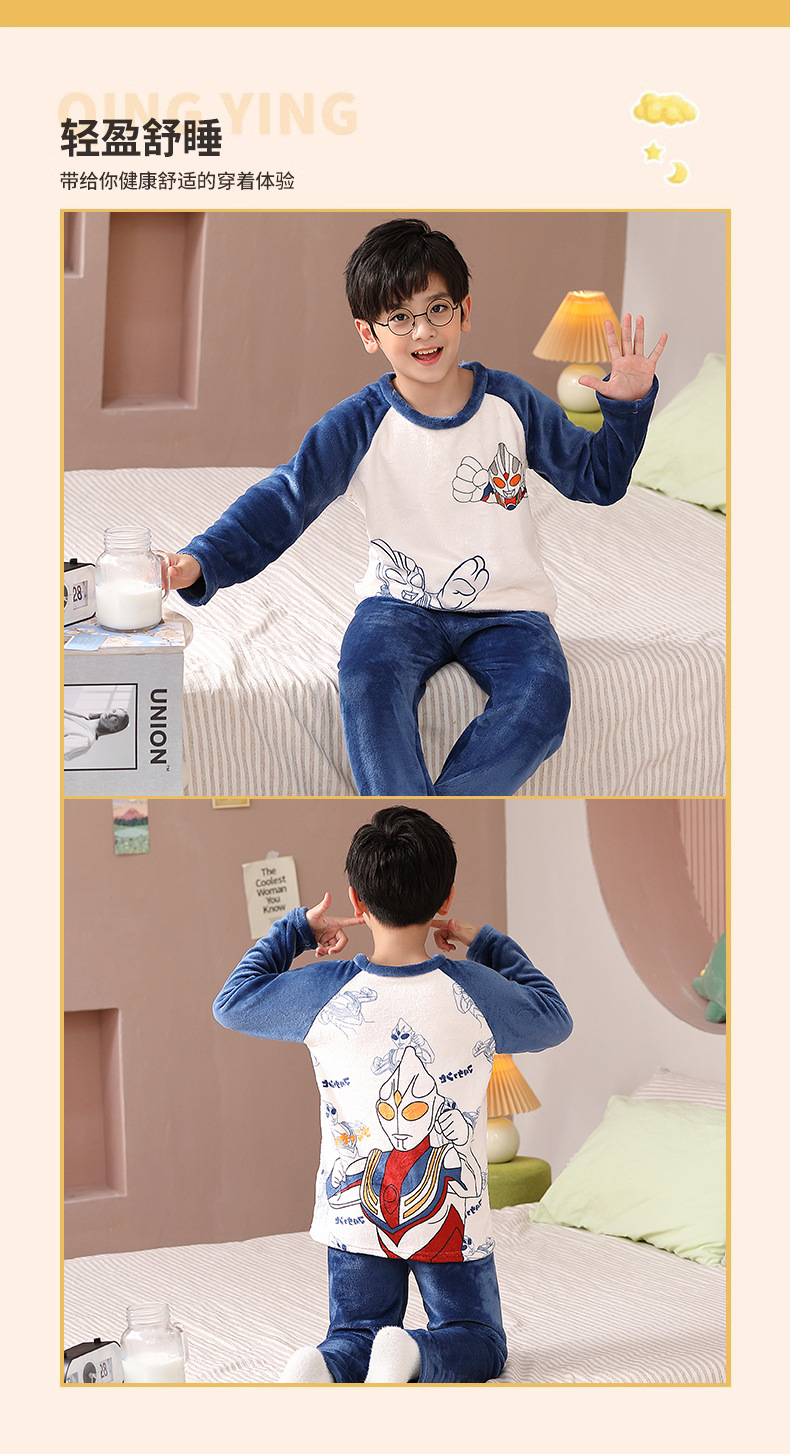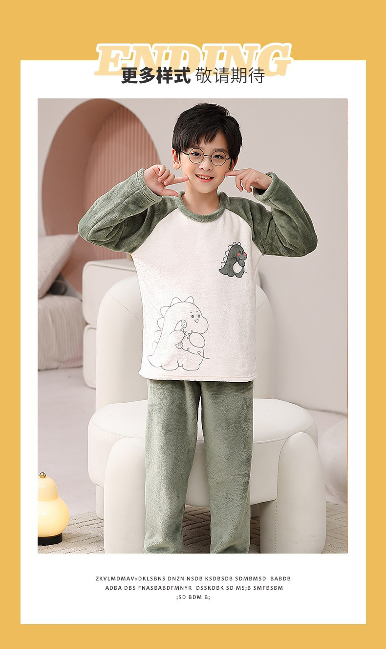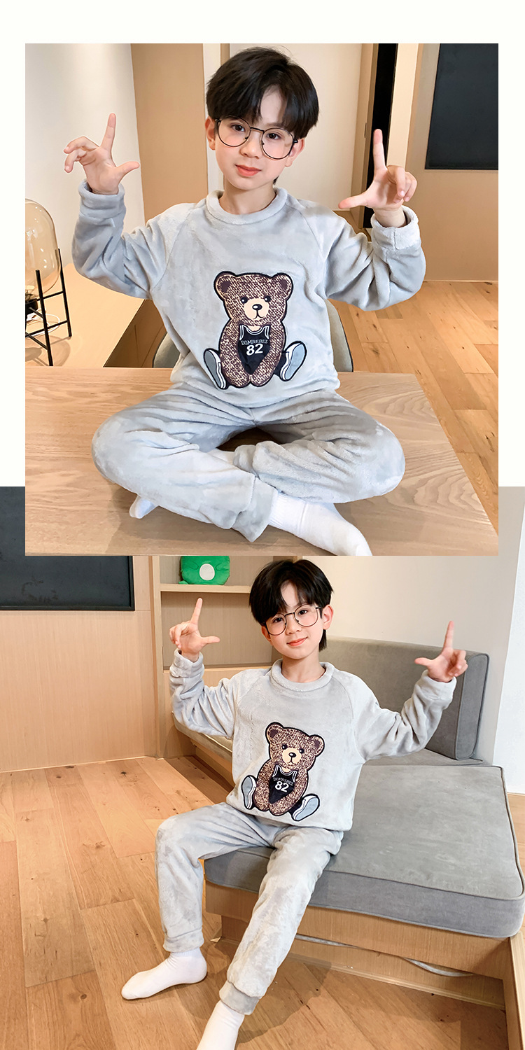 가을 겨울 어린이 잠옷 세트 두꺼운 기모 플란넬 소년과 소녀 아기 겨울 서양식 투피스 세트스토어 가기
