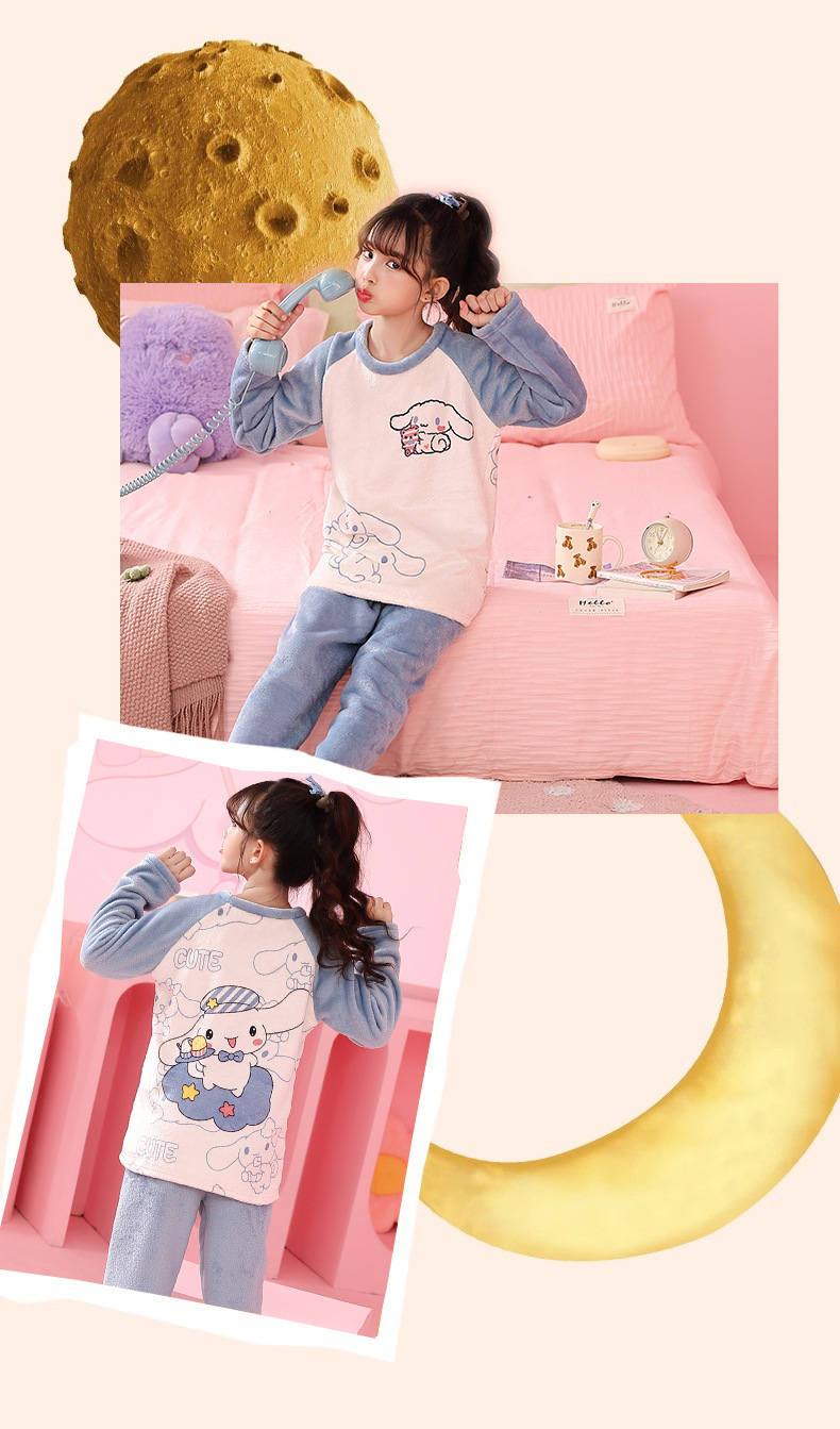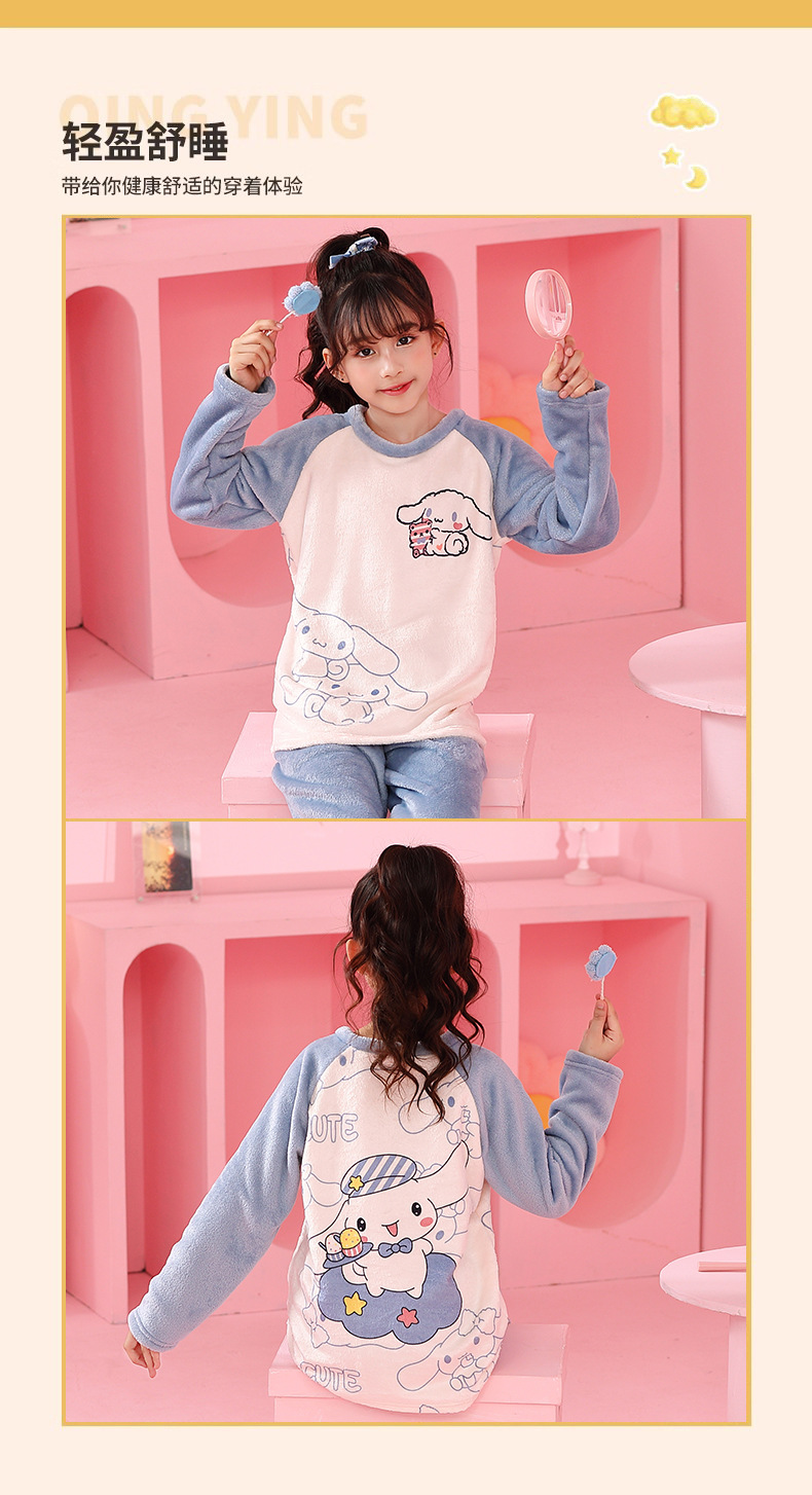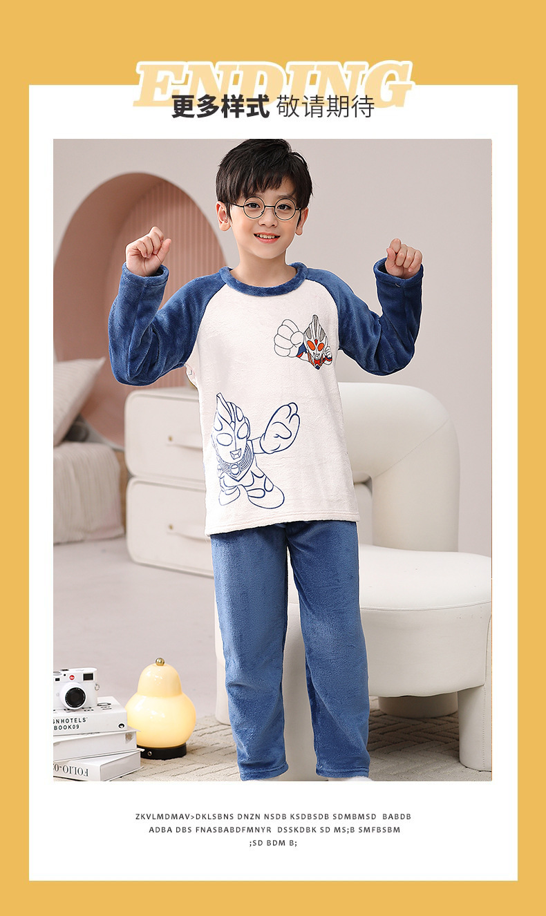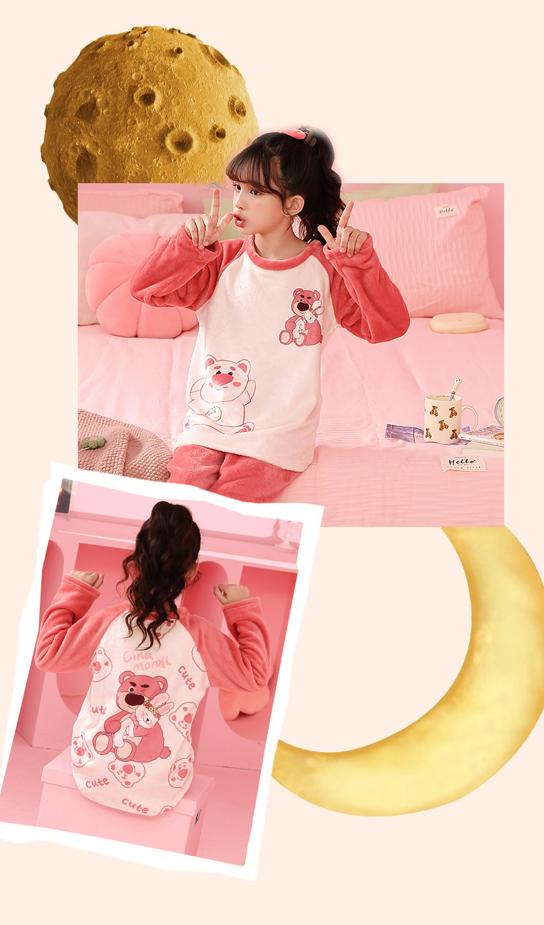 가을 겨울 어린이 잠옷 세트 두꺼운 기모 플란넬 소년과 소녀 아기 겨울 서양식 투피스 세트스토어 가기