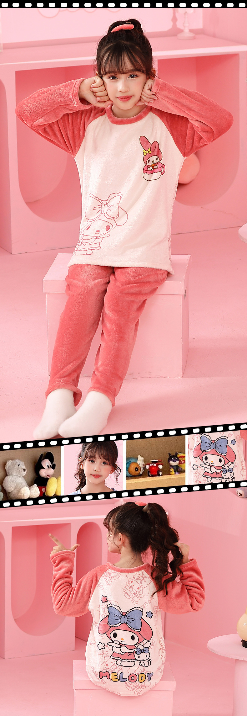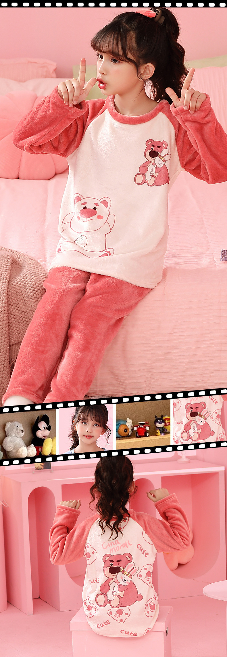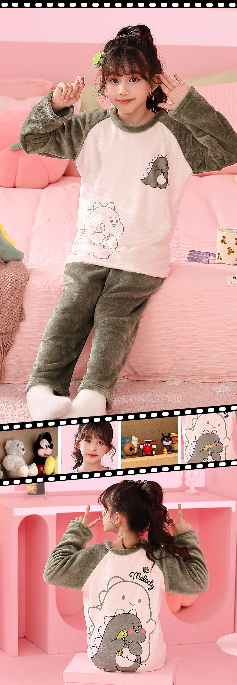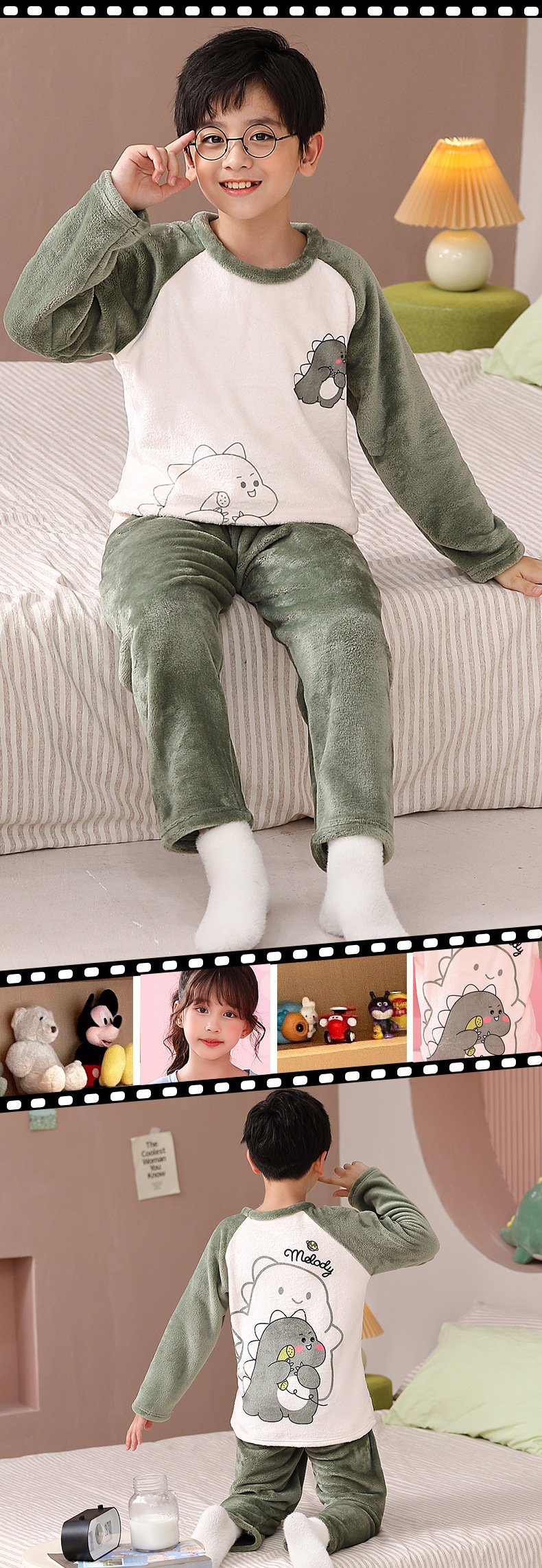 가을 겨울 어린이 잠옷 세트 두꺼운 기모 플란넬 소년과 소녀 아기 겨울 서양식 투피스 세트스토어 가기