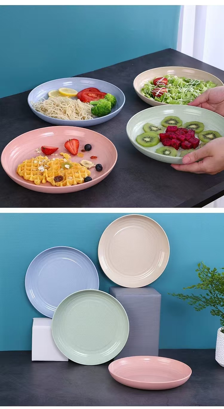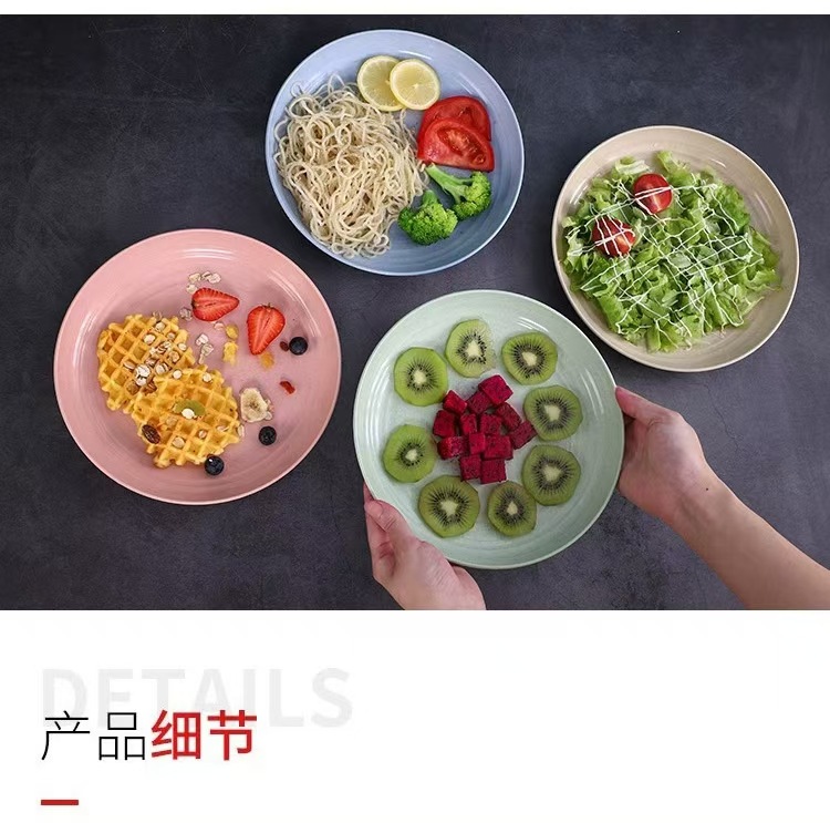 두꺼운 디스크 가정용 디너 플레이트 과일 플레이트 디너 플레이트 플라스틱 플레이트 밀 밀짚 식기 플레이트 제로 푸드 플레이트 드롭 방지 및 내구성