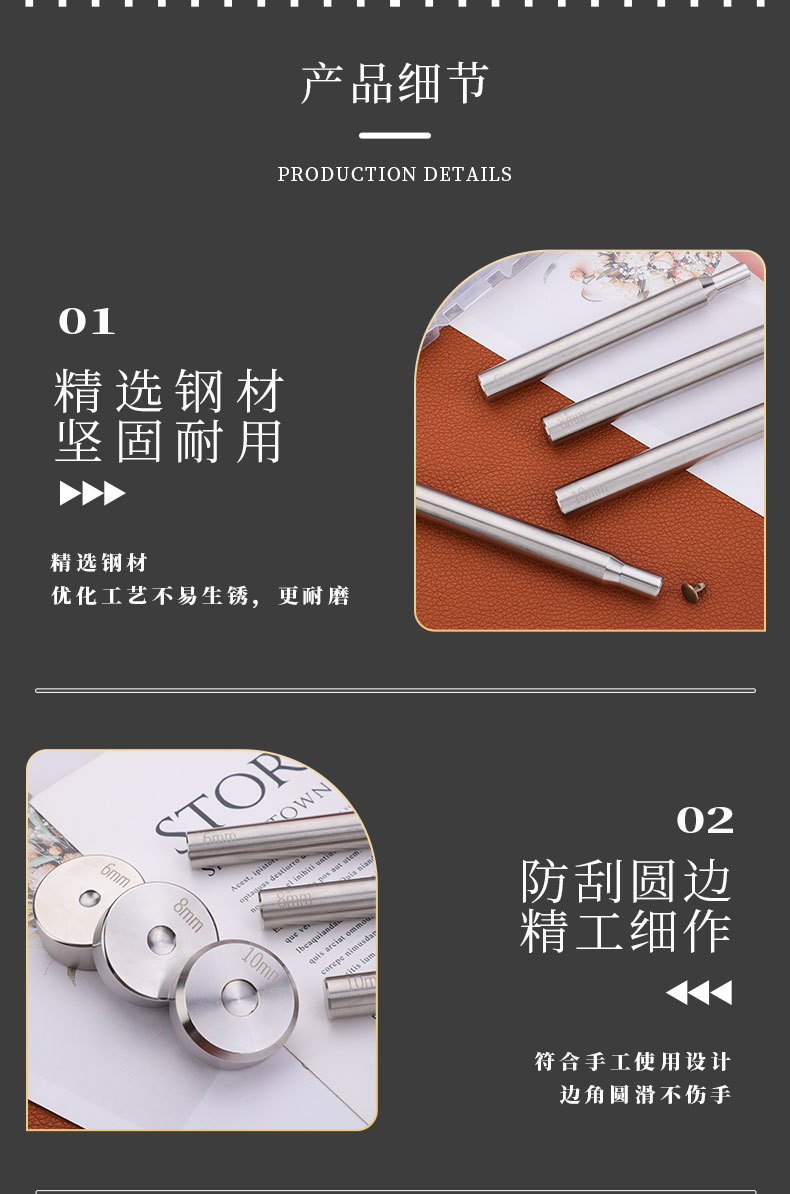 양면 리벳 설치 도구 스테인레스 스틸 테이블 타격 네일 펀치 세트 DIY 수제 가죽 조각 도구스토어 가기
