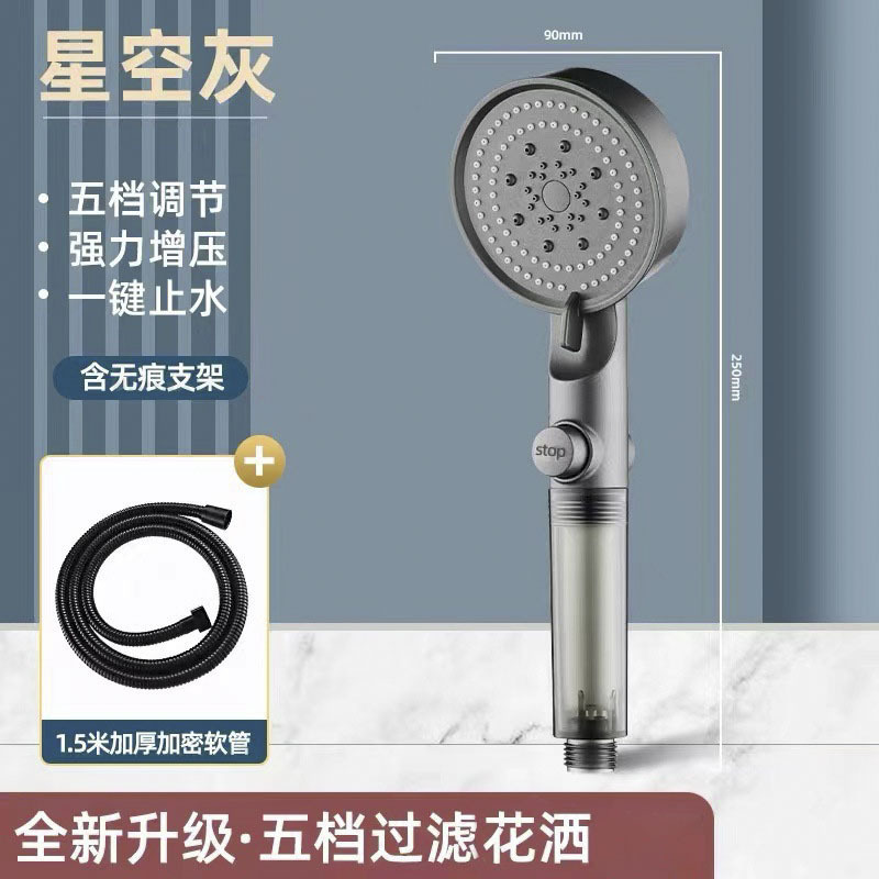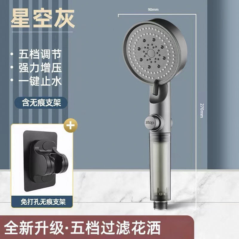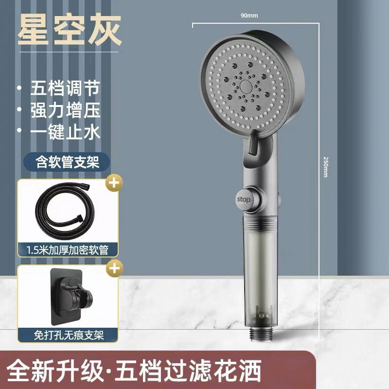 • 건그레이 5단 투명 샤워기 + 펀치프리 브라켓