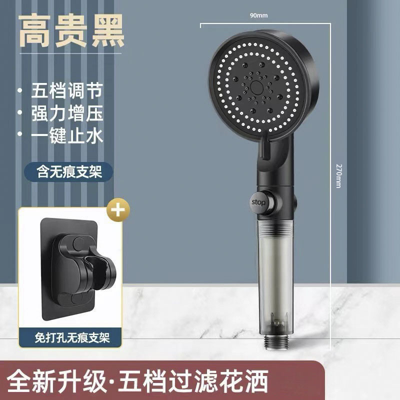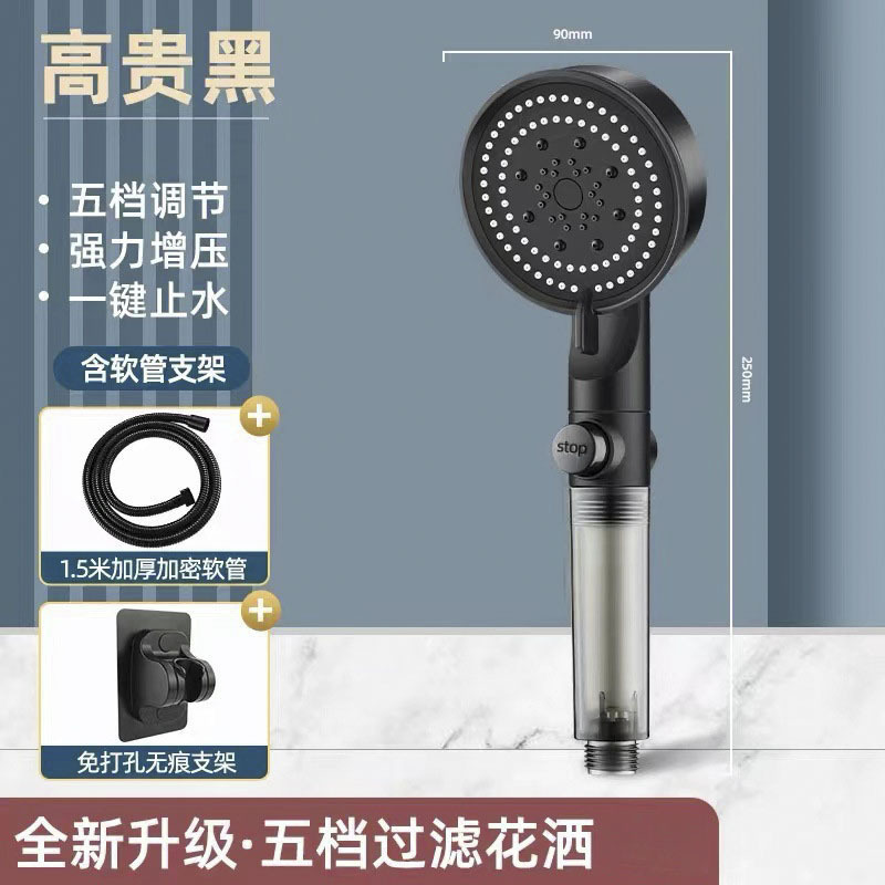• 블랙 5단 투명 샤워기 + 펀치 프리 브라켓