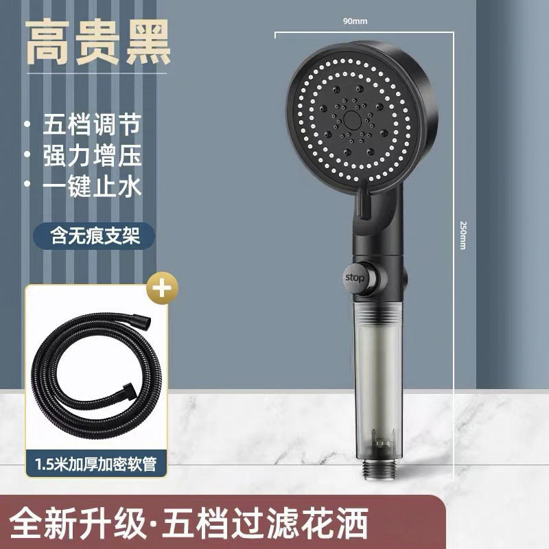 • 검정색 5단 투명 샤워기 + 구리 코어 방폭 파이프 1.5m개