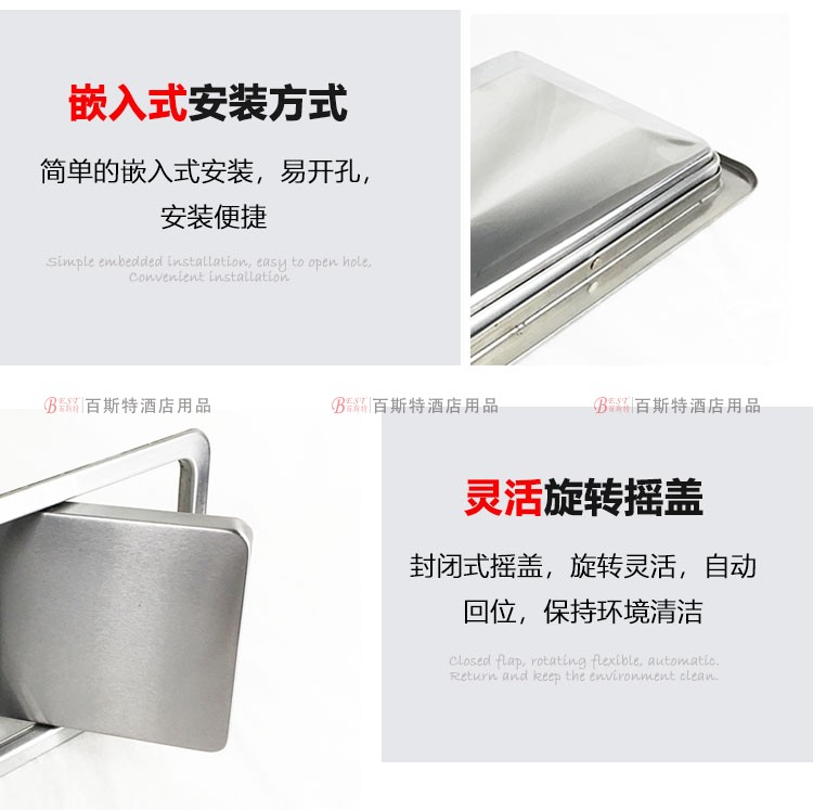 카운터 탑 임베디드 스테인레스 스틸 휴지통 커버 로킹 커버 플랩 커버 장식 주방 욕실 와이어 드로잉 평방 백만스토어 가기