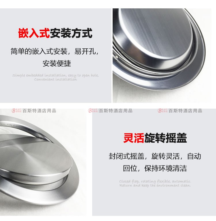 카운터 탑 임베디드 스테인레스 스틸 휴지통 커버 로킹 커버 플랩 커버 장식 주방 욕실 와이어 드로잉 평방 백만