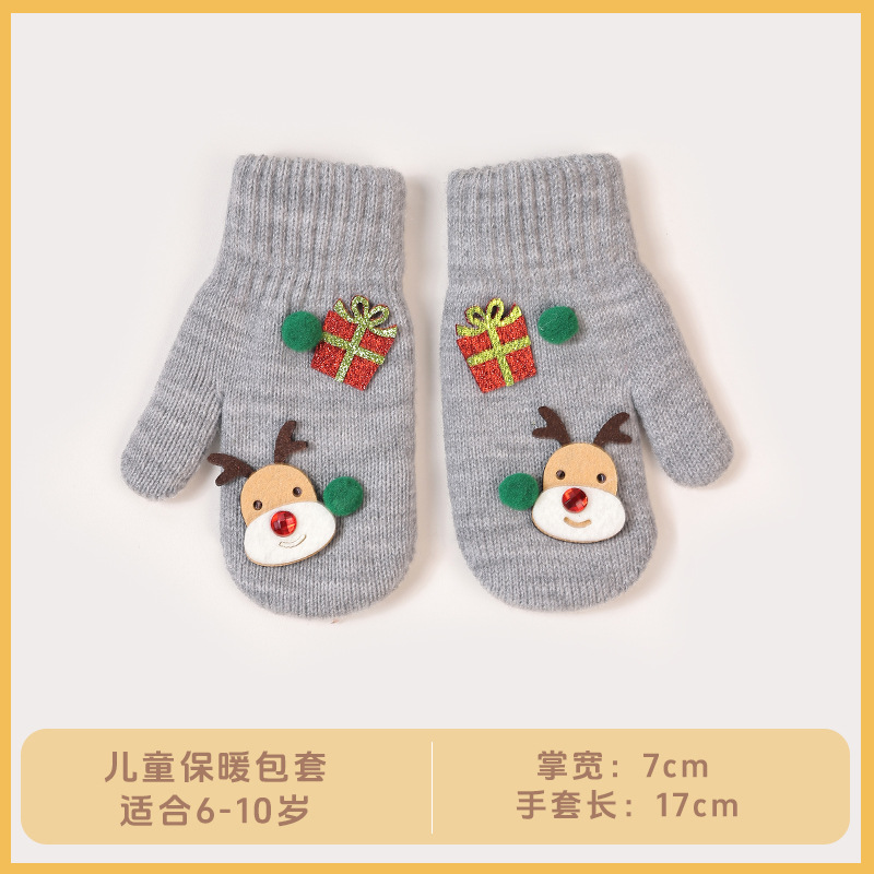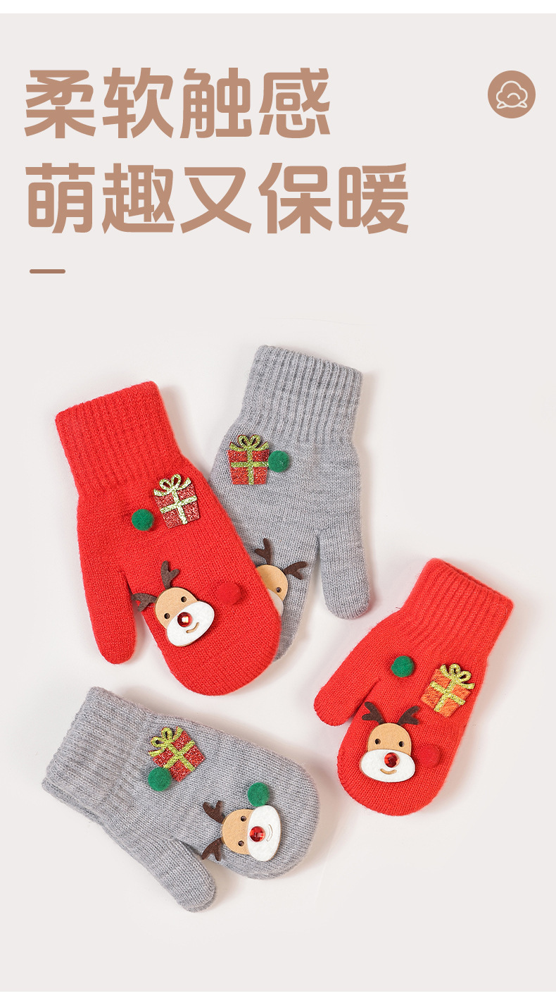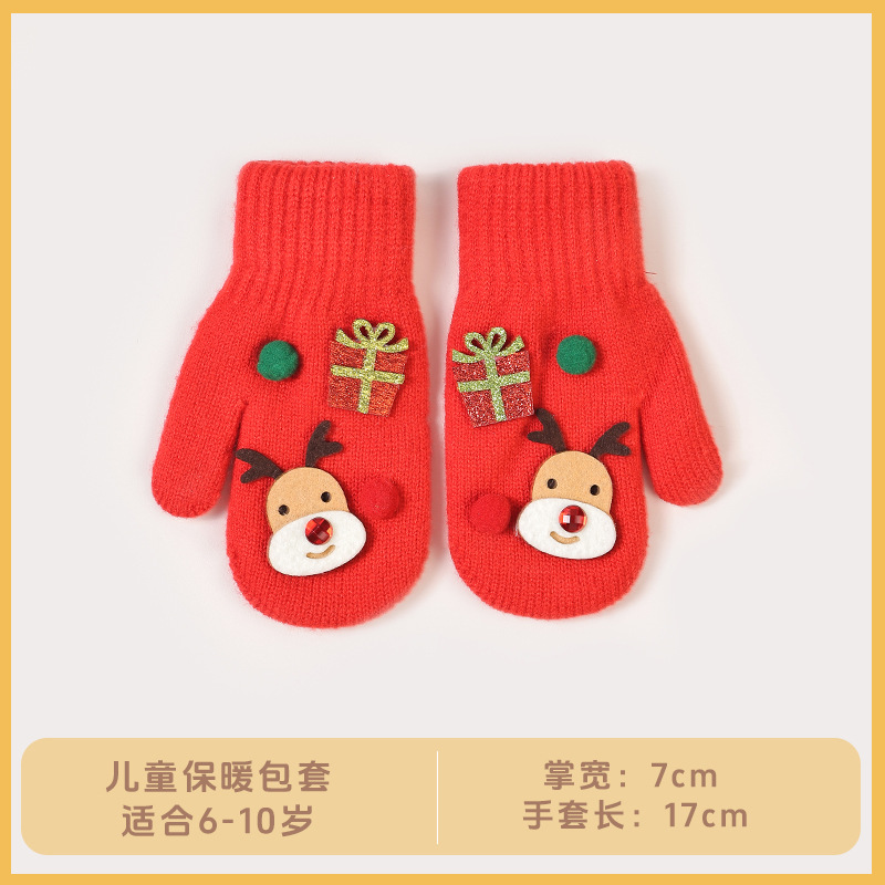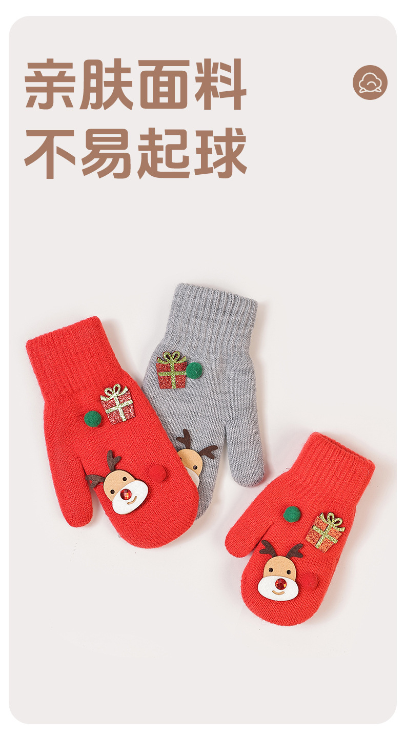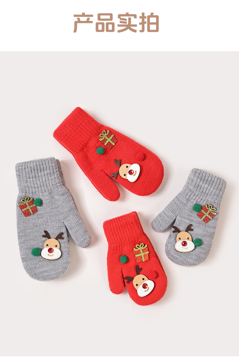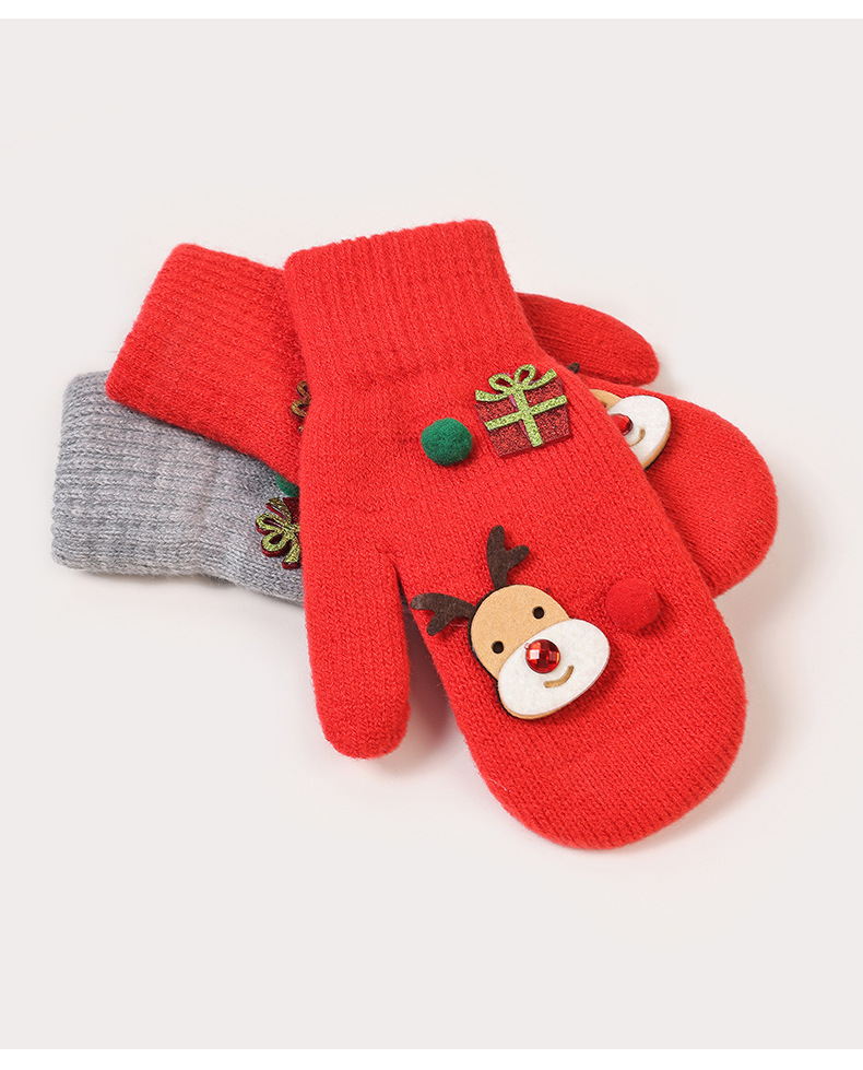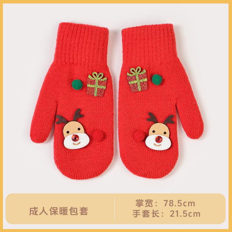 따뜻한 부모-아이 기모 두꺼운 장갑 자전거 남성과 여성을위한 새로운 빨간 엘크 만화 따뜻한 장갑스토어 가기