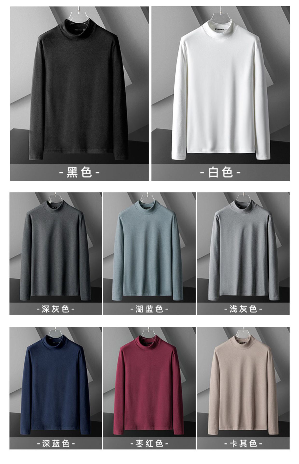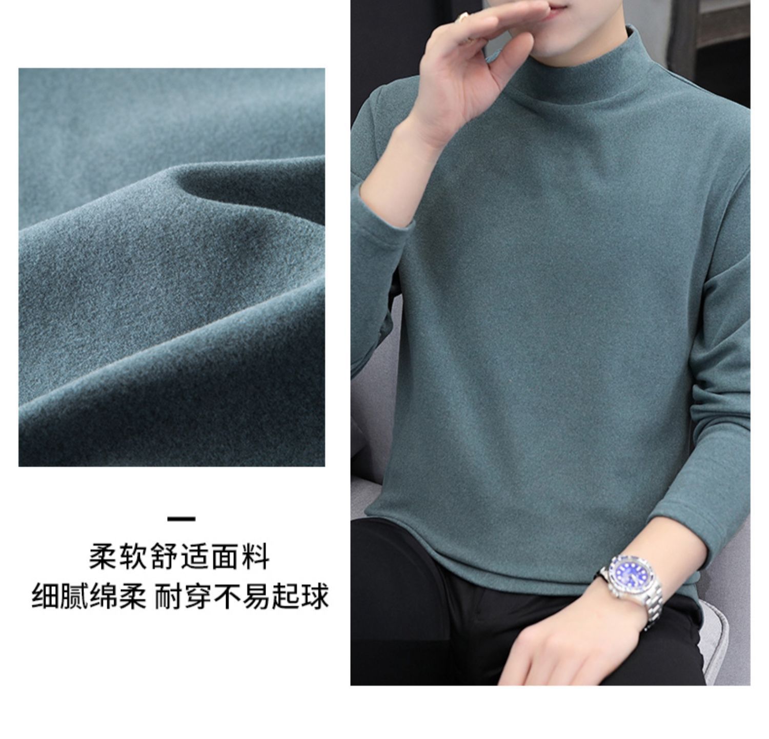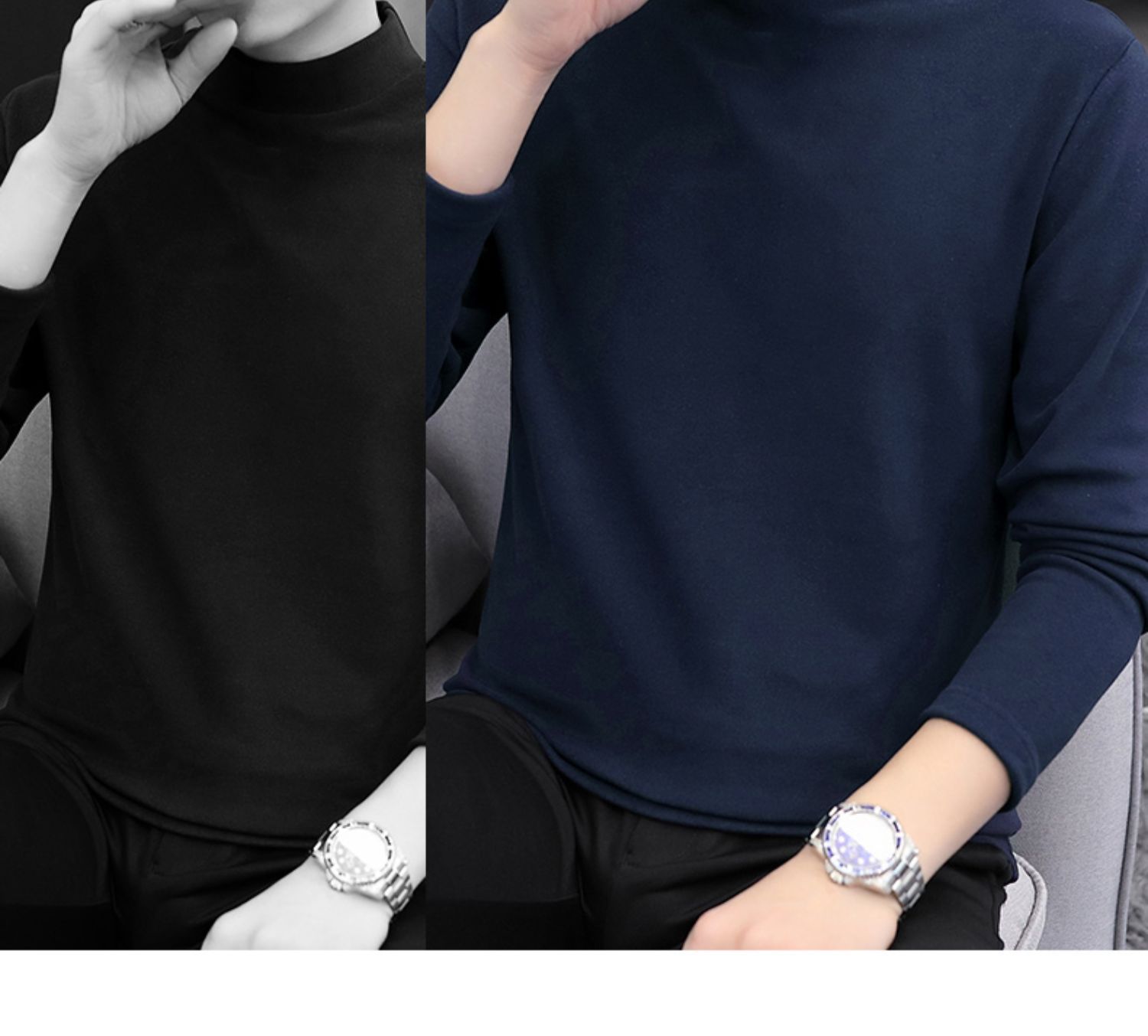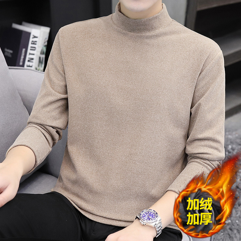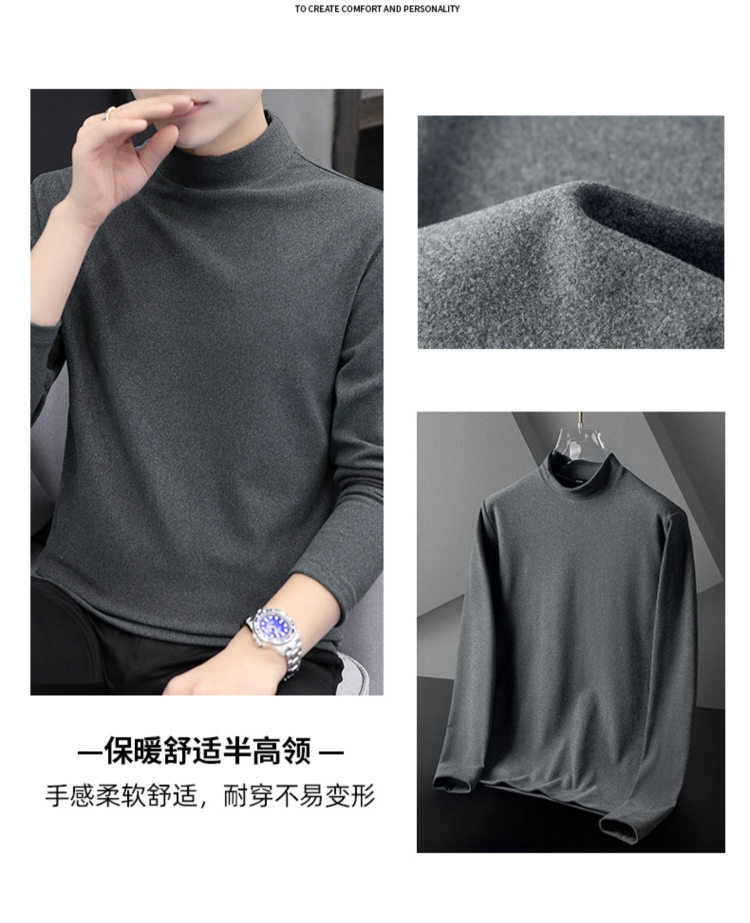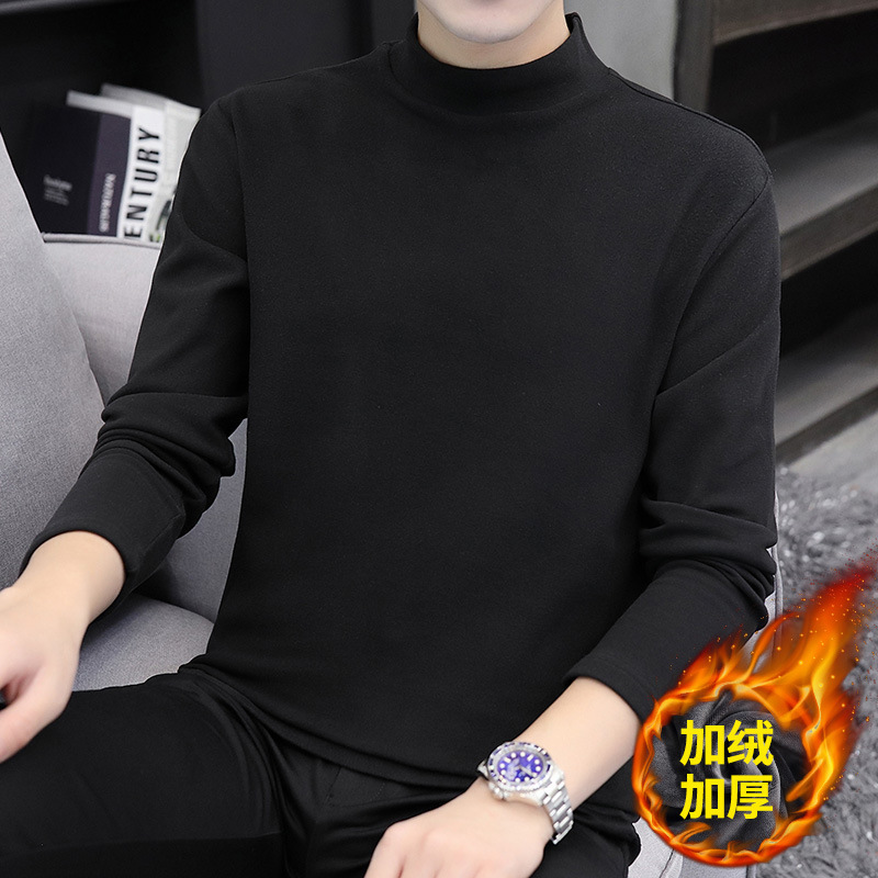 양면 벨벳 모크 칼라 긴팔 티셔츠 남성용 십대 기모 두꺼운 베이스 셔츠 속옷 미들 칼라 따뜻한 내복