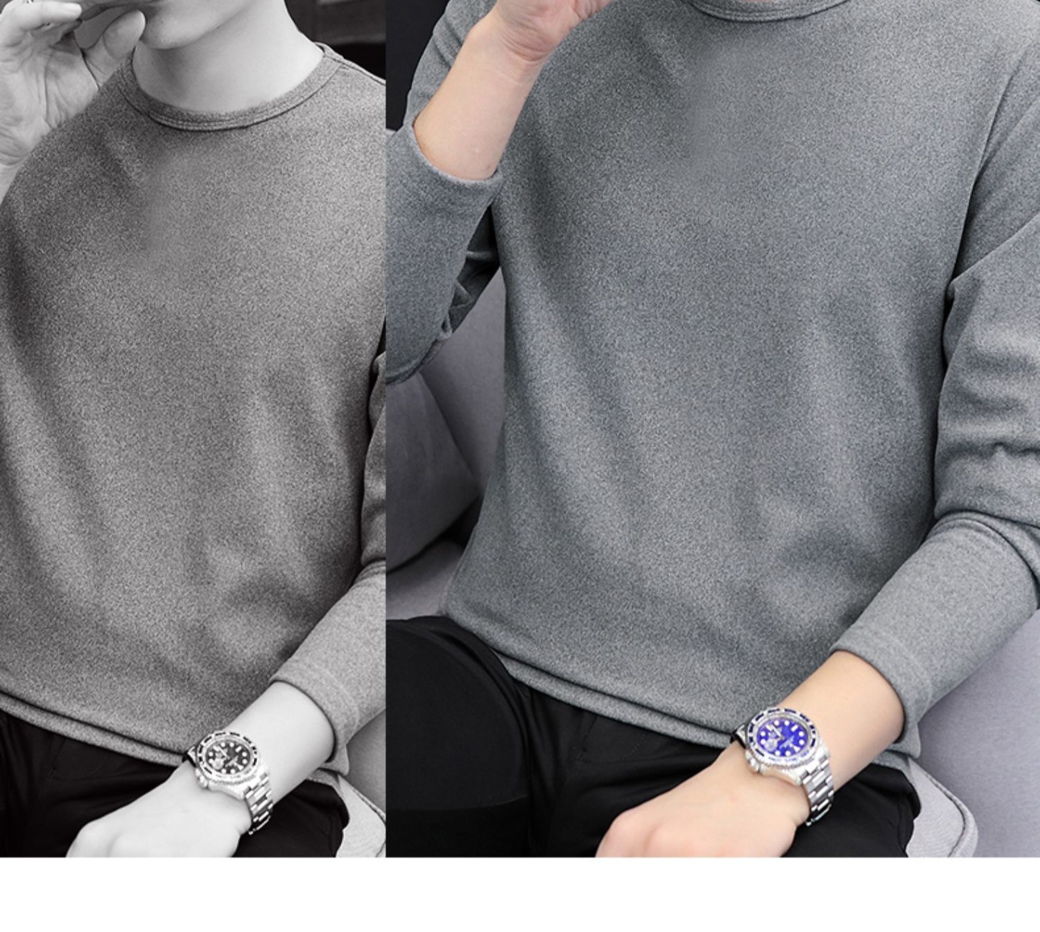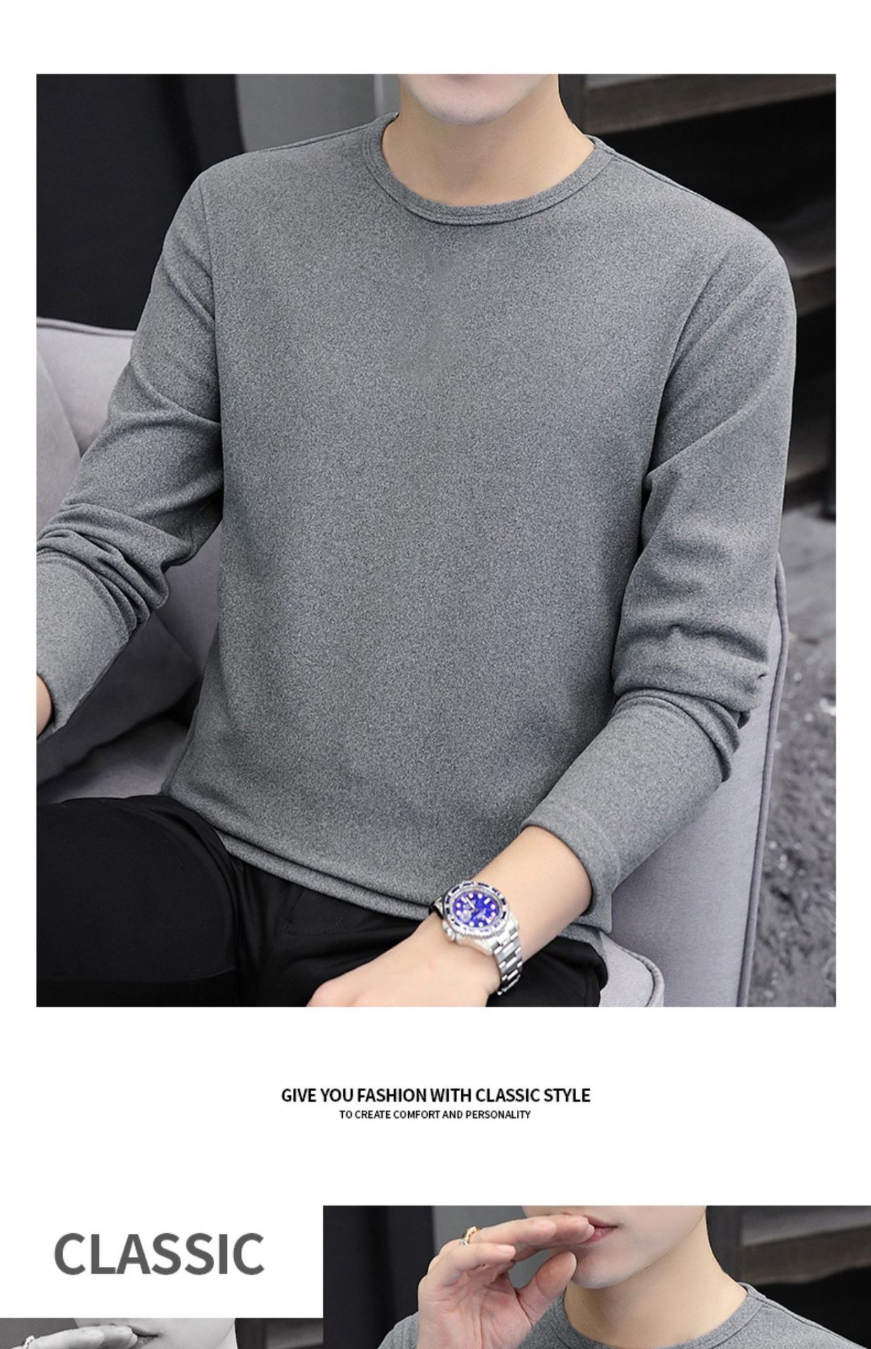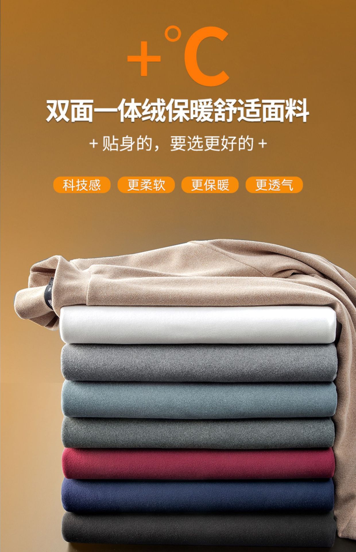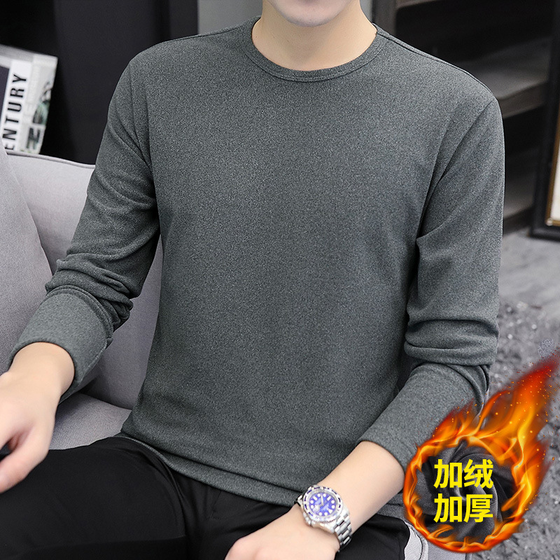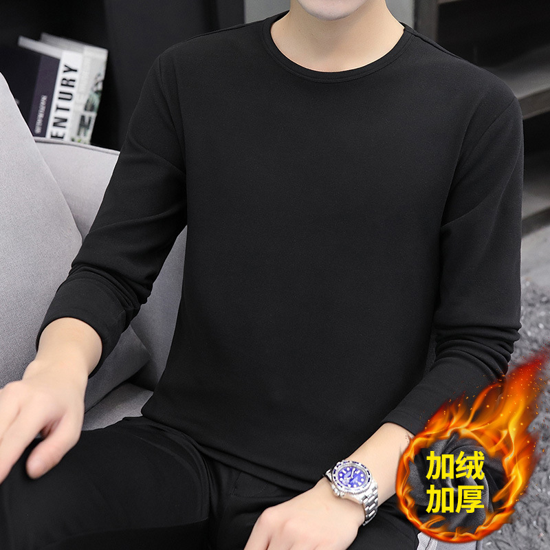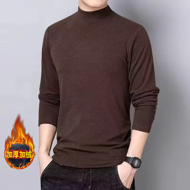 양면 벨벳 모크 칼라 긴팔 티셔츠 남성용 십대 기모 두꺼운 베이스 셔츠 속옷 미들 칼라 따뜻한 내복