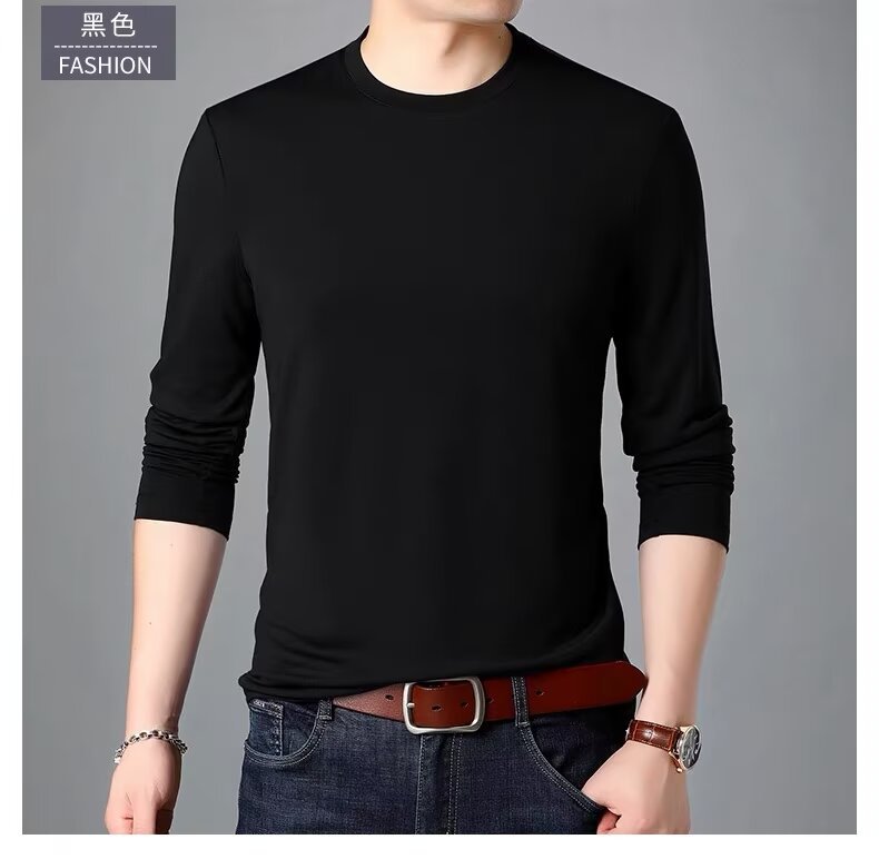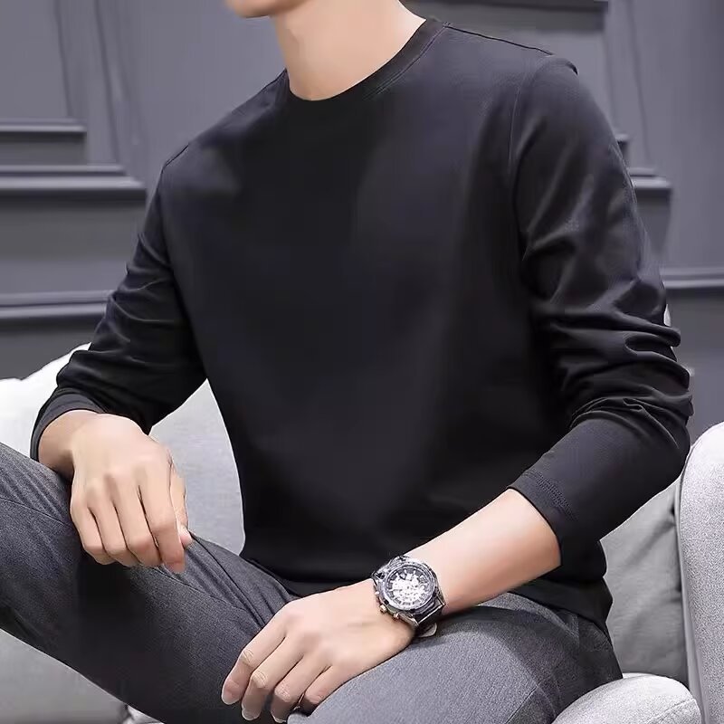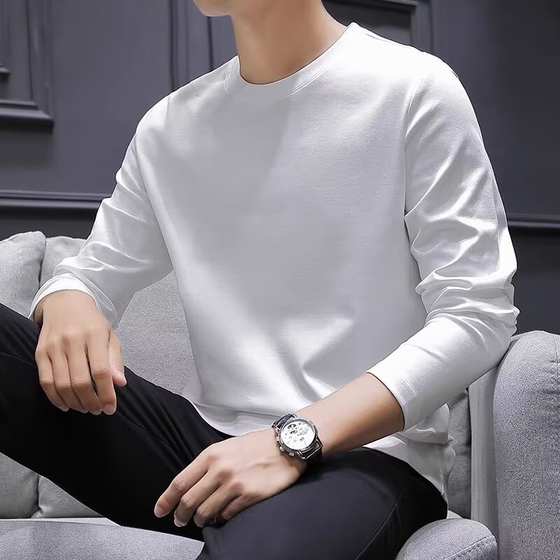 순수 코튼 긴팔 티셔츠 남성용 봄과 가을 얇은 티셔츠 느슨한 핸섬 솔리드 컬러 탑 머서라이즈면 트렌디베이스 셔츠스토어 가기