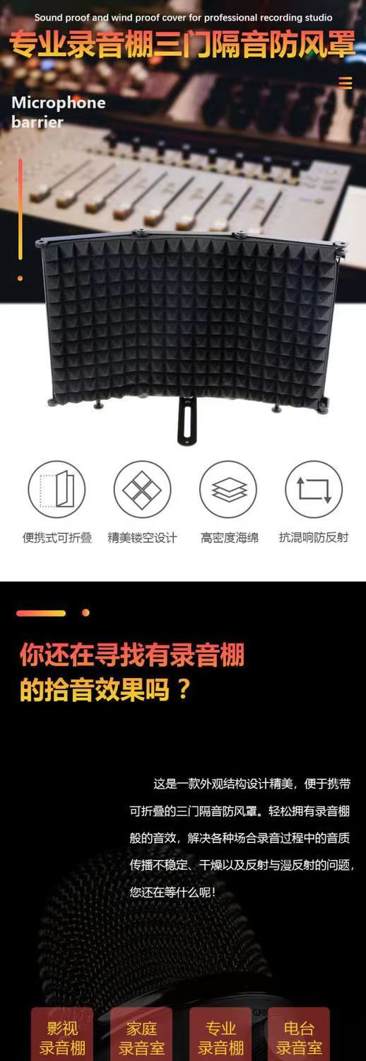 마이크 방음 커버 방풍 면화 격리 커버 3 개의 문과 5 개의 문 휴대 전화 클립 소음 감소 라이브 녹음 노래 마이크