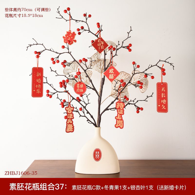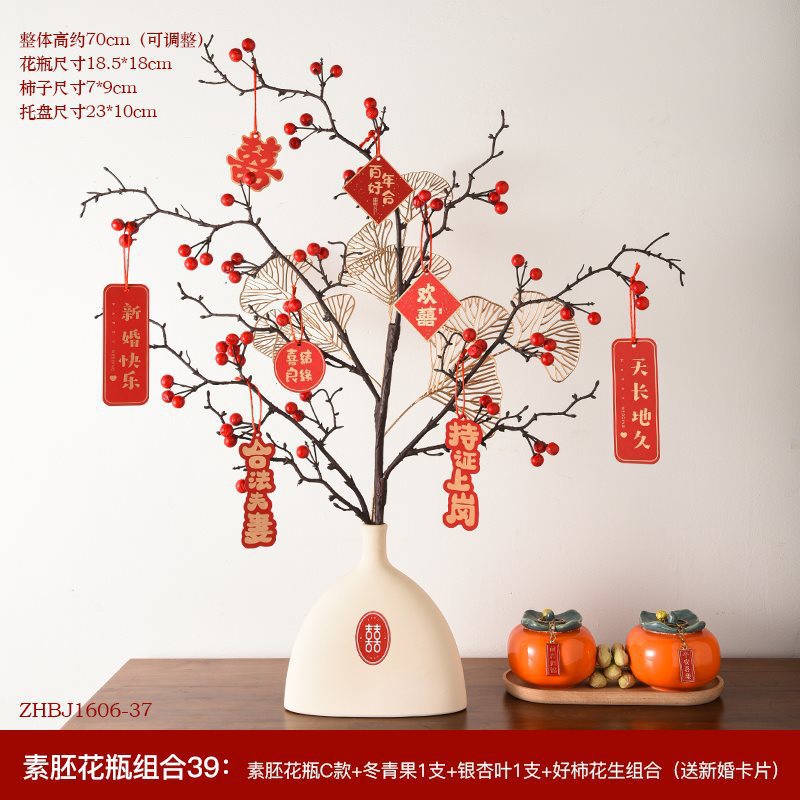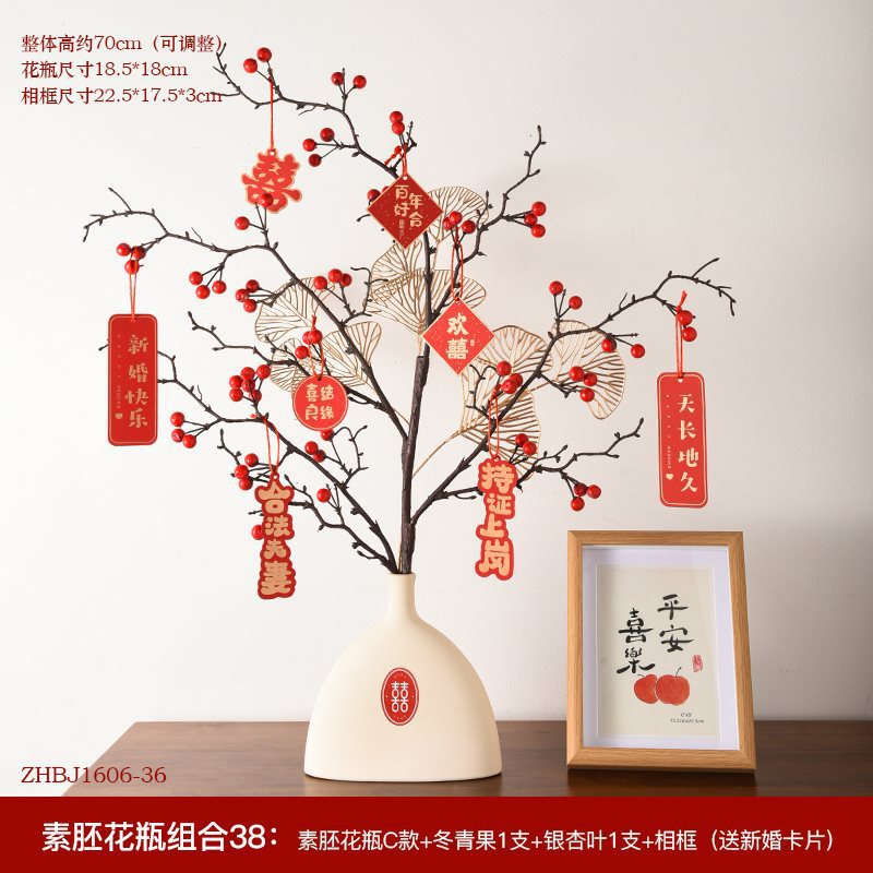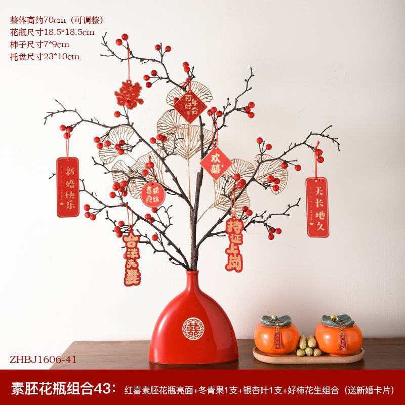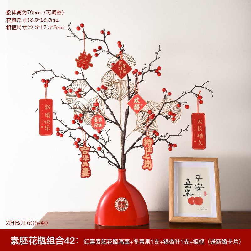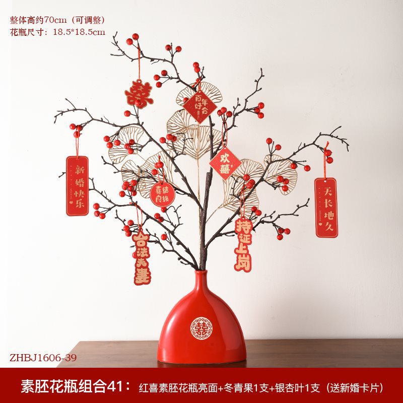 • 웨딩 플레인 배아 꽃병 장식 레드 + 행운의 열매 1개 + 은행잎 1개☆