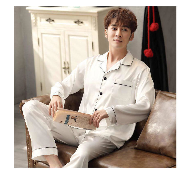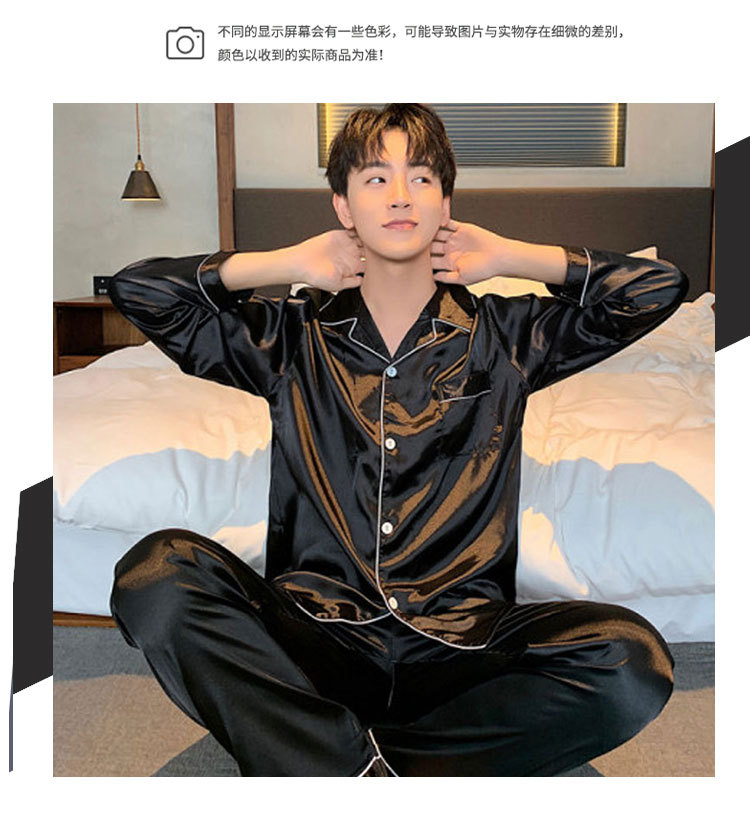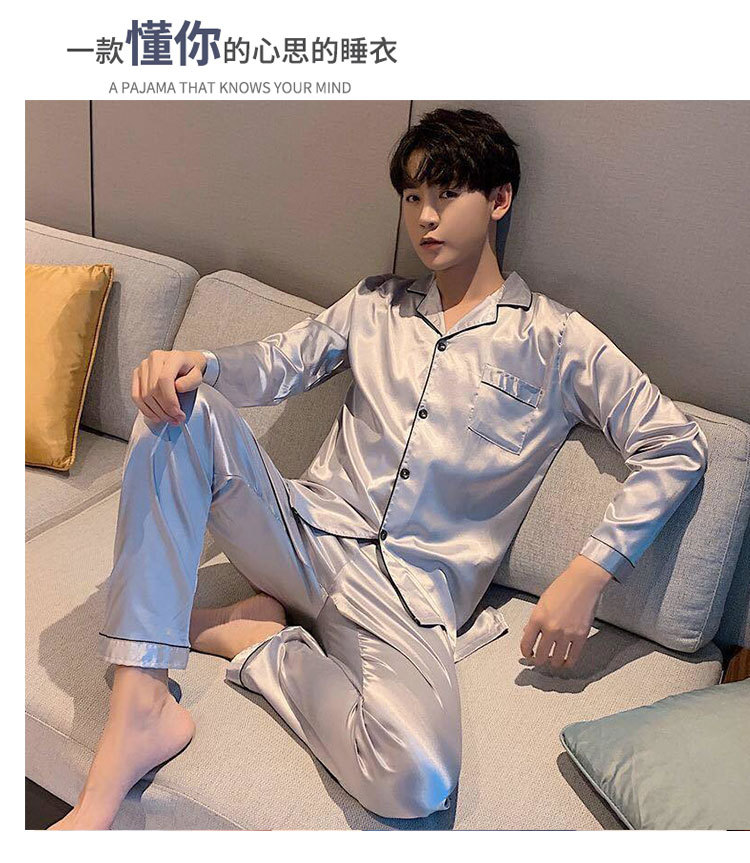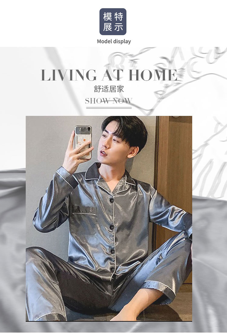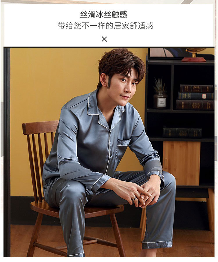 아이스 실크 잠옷 남자의 가을과 겨울 느슨한 카디건 플러스 사이즈 긴 소매 실크 세트 간단한 캐주얼 소년 홈 옷스토어 가기