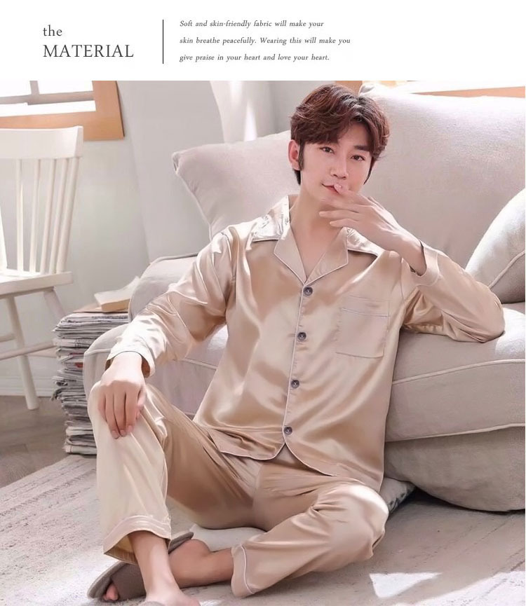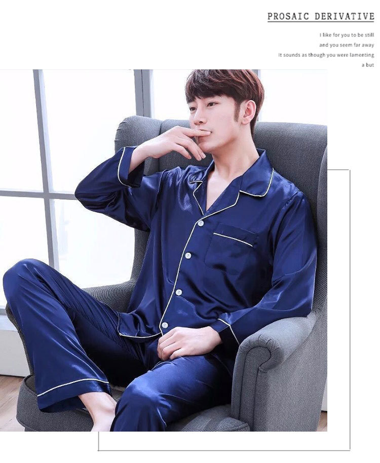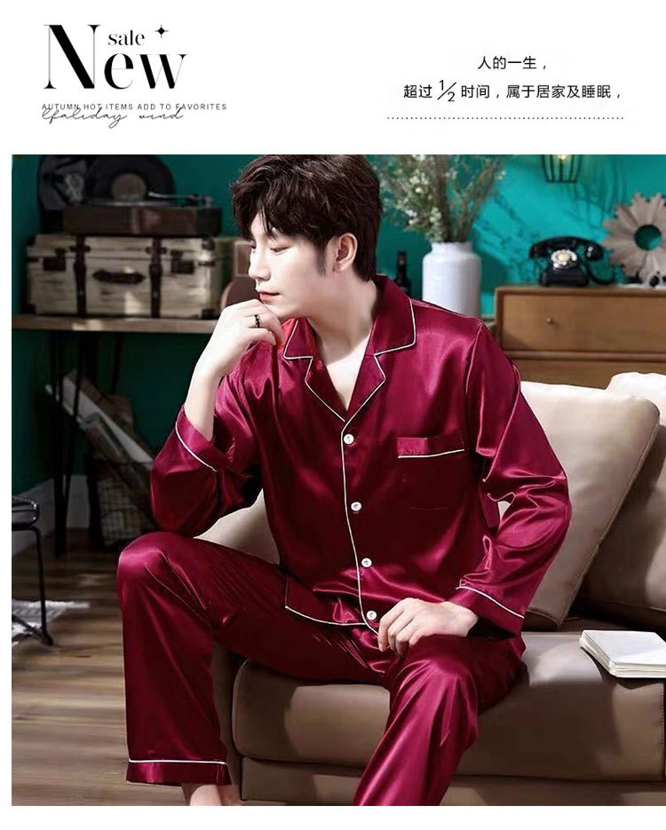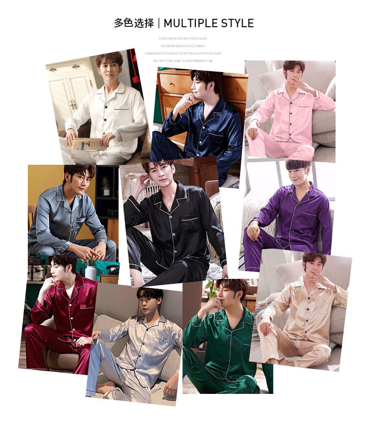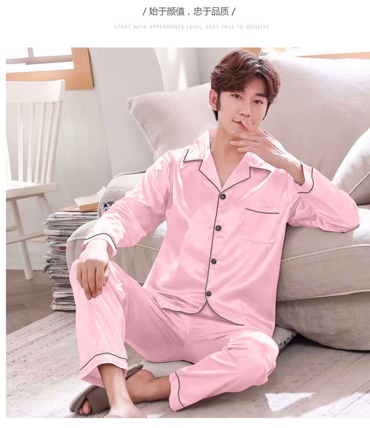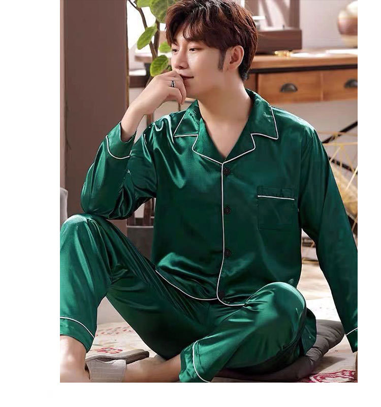 아이스 실크 잠옷 남자의 가을과 겨울 느슨한 카디건 플러스 사이즈 긴 소매 실크 세트 간단한 캐주얼 소년 홈 옷스토어 가기