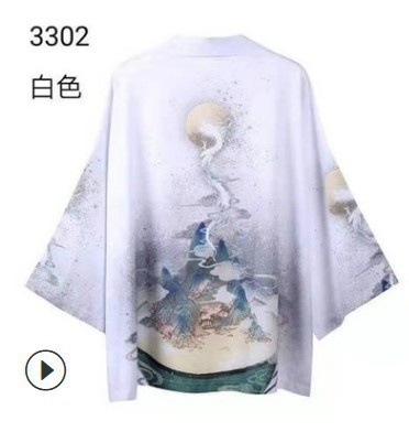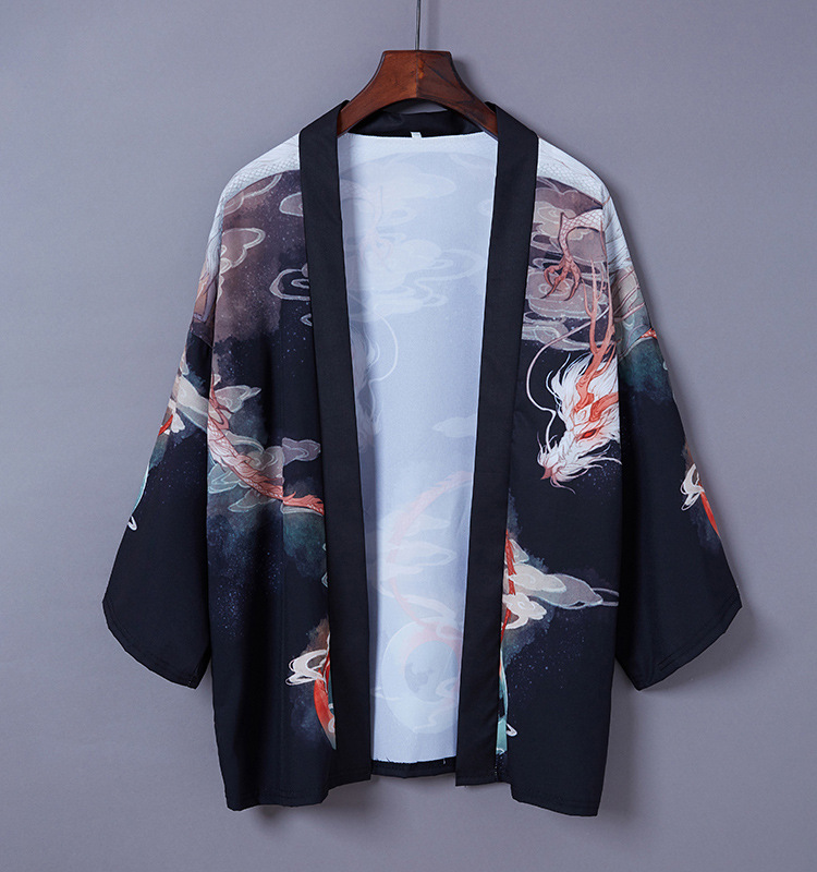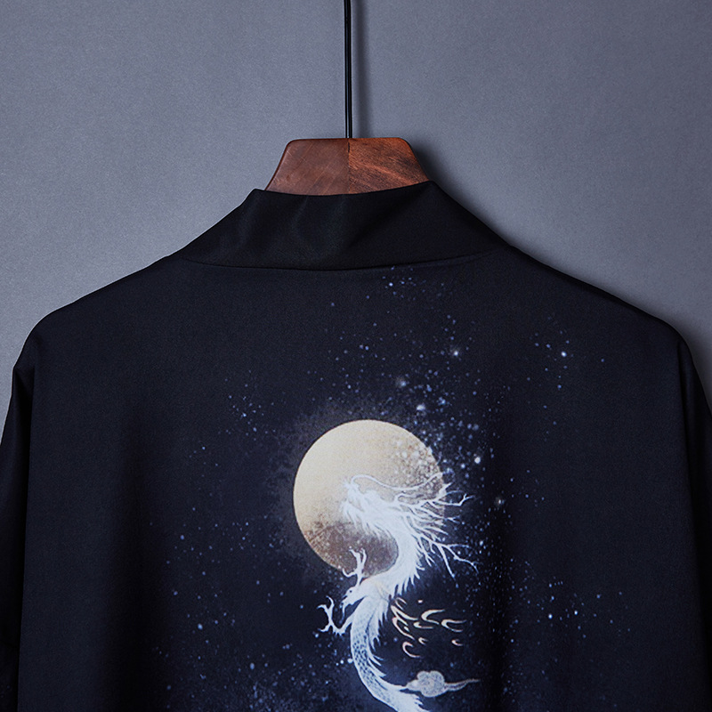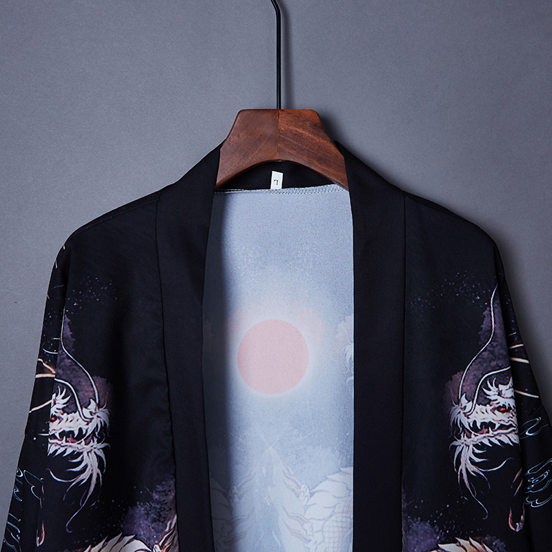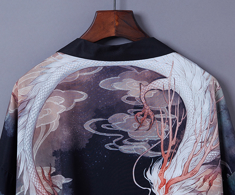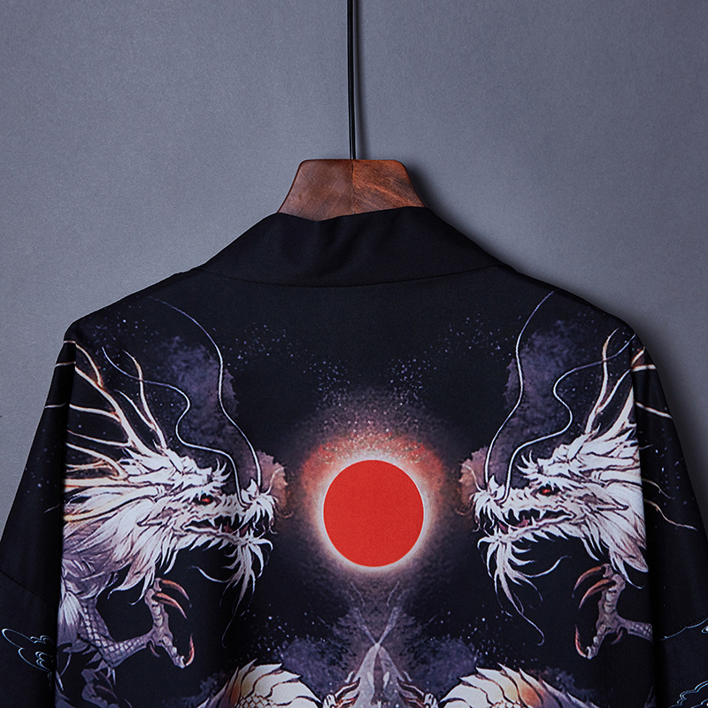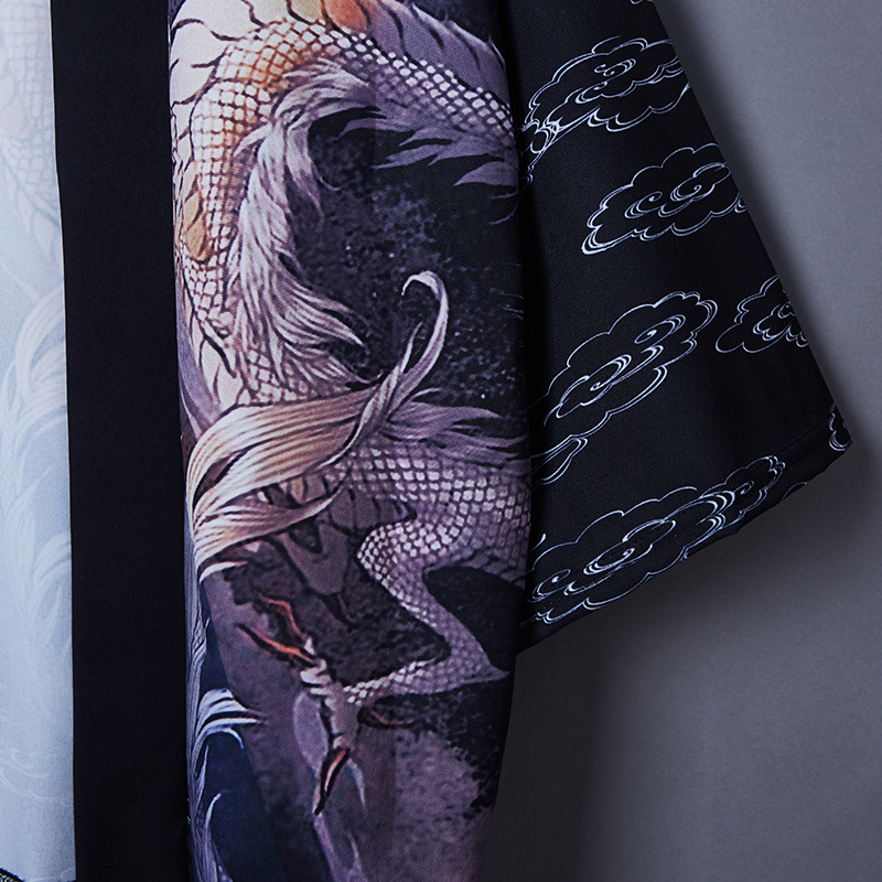 일본 스타일 짠 중국 스타일 우키요에 드래곤 로브 느슨한 일본 셔츠 목욕 가운 기모노 카디건 짧은 재킷