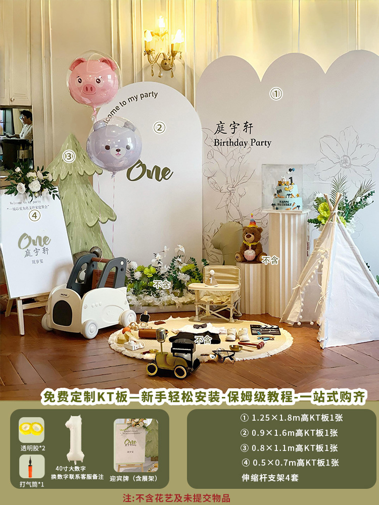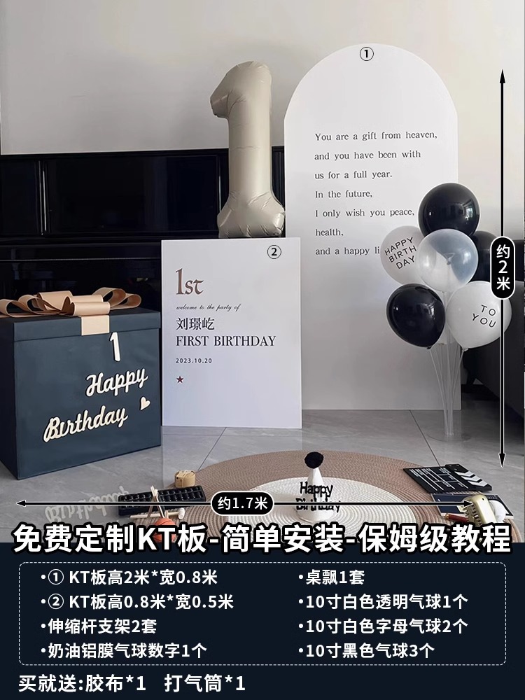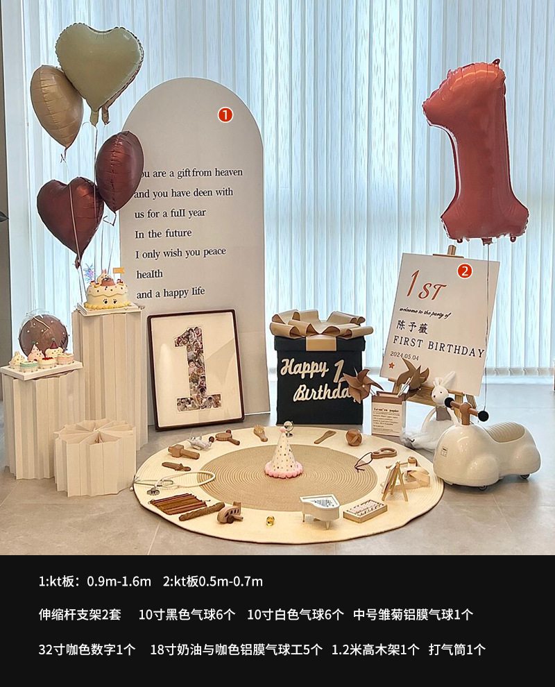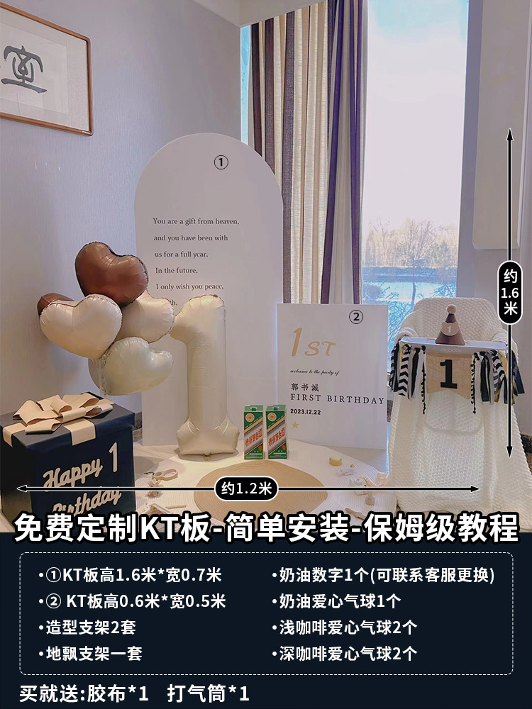 아기의 생일 연회 장식 장면 소년과 소녀 한국 간단한 가족 풍선 배경 벽