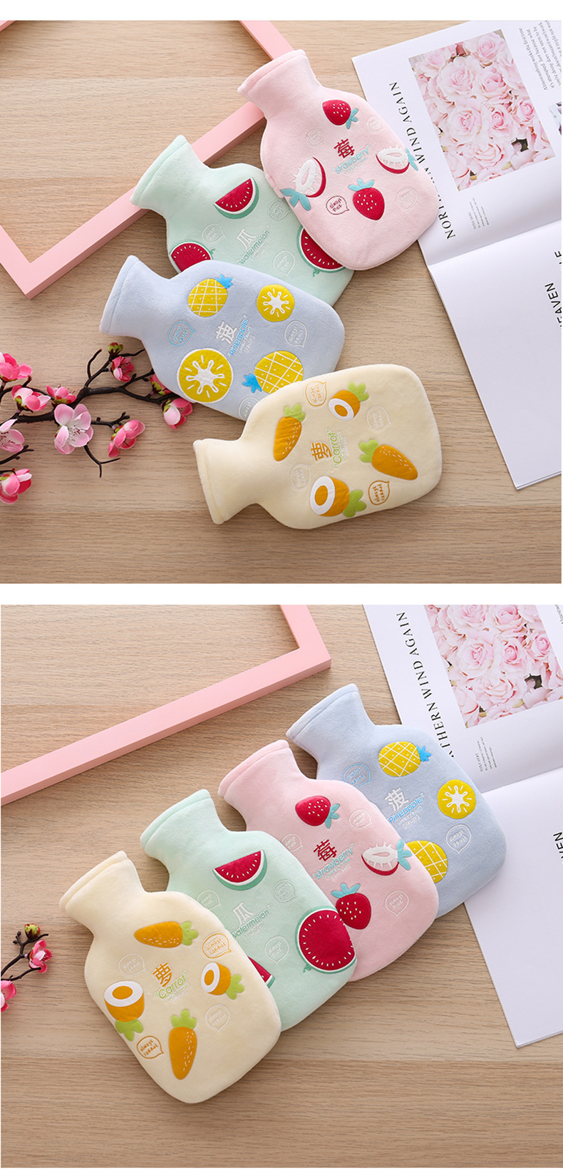 뜨거운 압축 관개 가방 귀여운 만화 과일 고무 겨울 학생 따뜻한 물 채우기 뜨거운 물 가방 아기 Hua Geng