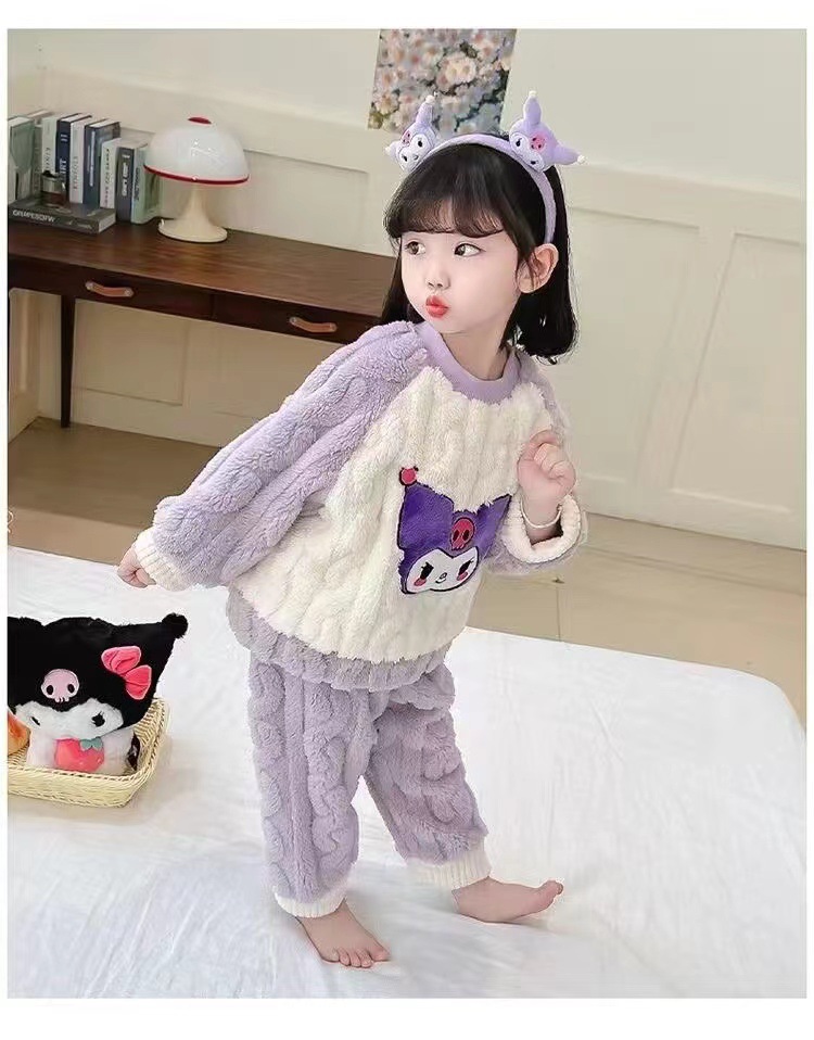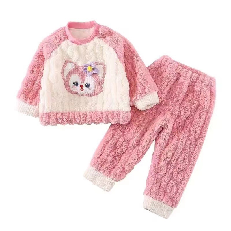 겨울 어린이 플란넬 파자마 슈퍼 귀여운 귀여운 소녀 서양식 홈 옷 가을과 겨울 새로운 산호 양털 세트