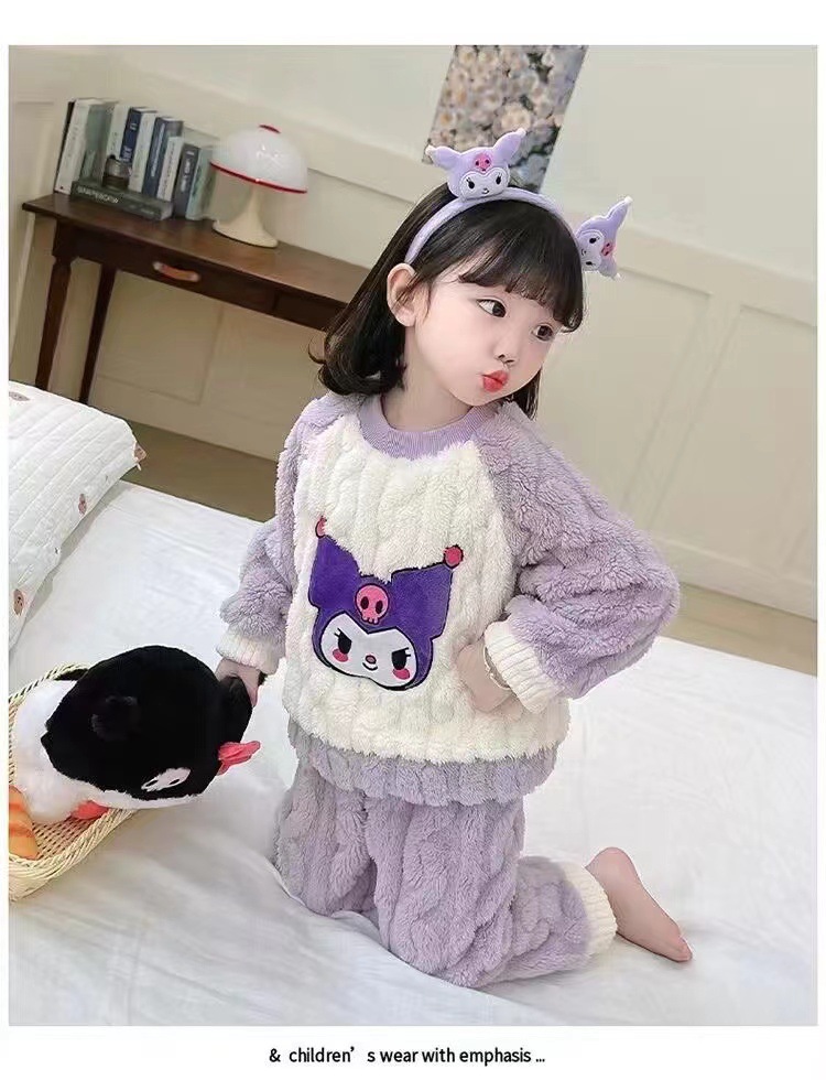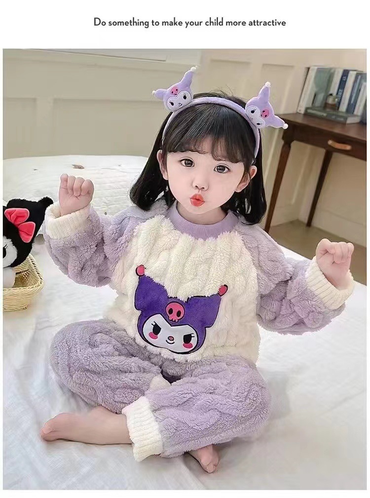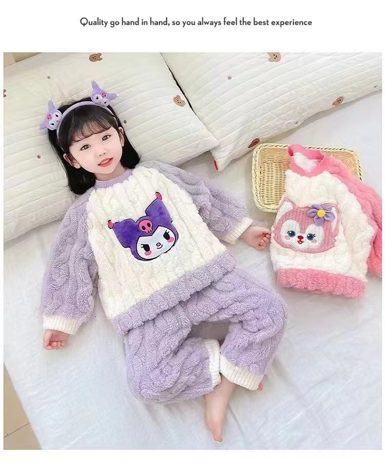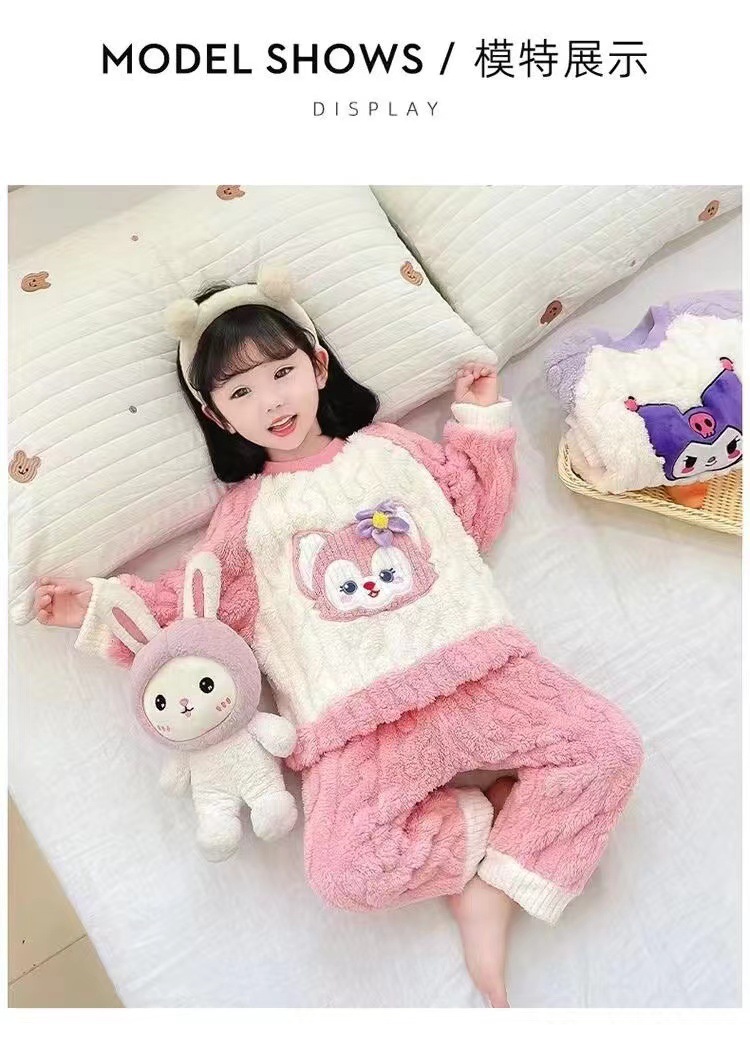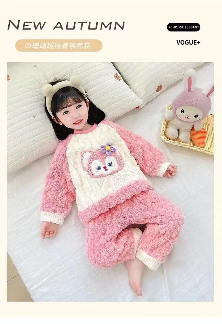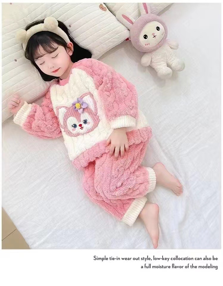 겨울 어린이 플란넬 파자마 슈퍼 귀여운 귀여운 소녀 서양식 홈 옷 가을과 겨울 새로운 산호 양털 세트스토어 가기