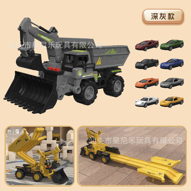 어린이 대형 엔지니어링 차량 장난감 변형 저장 배출 레일 자동차 소년 시뮬레이션 굴삭기 합금 장난감 자동차스토어 가기