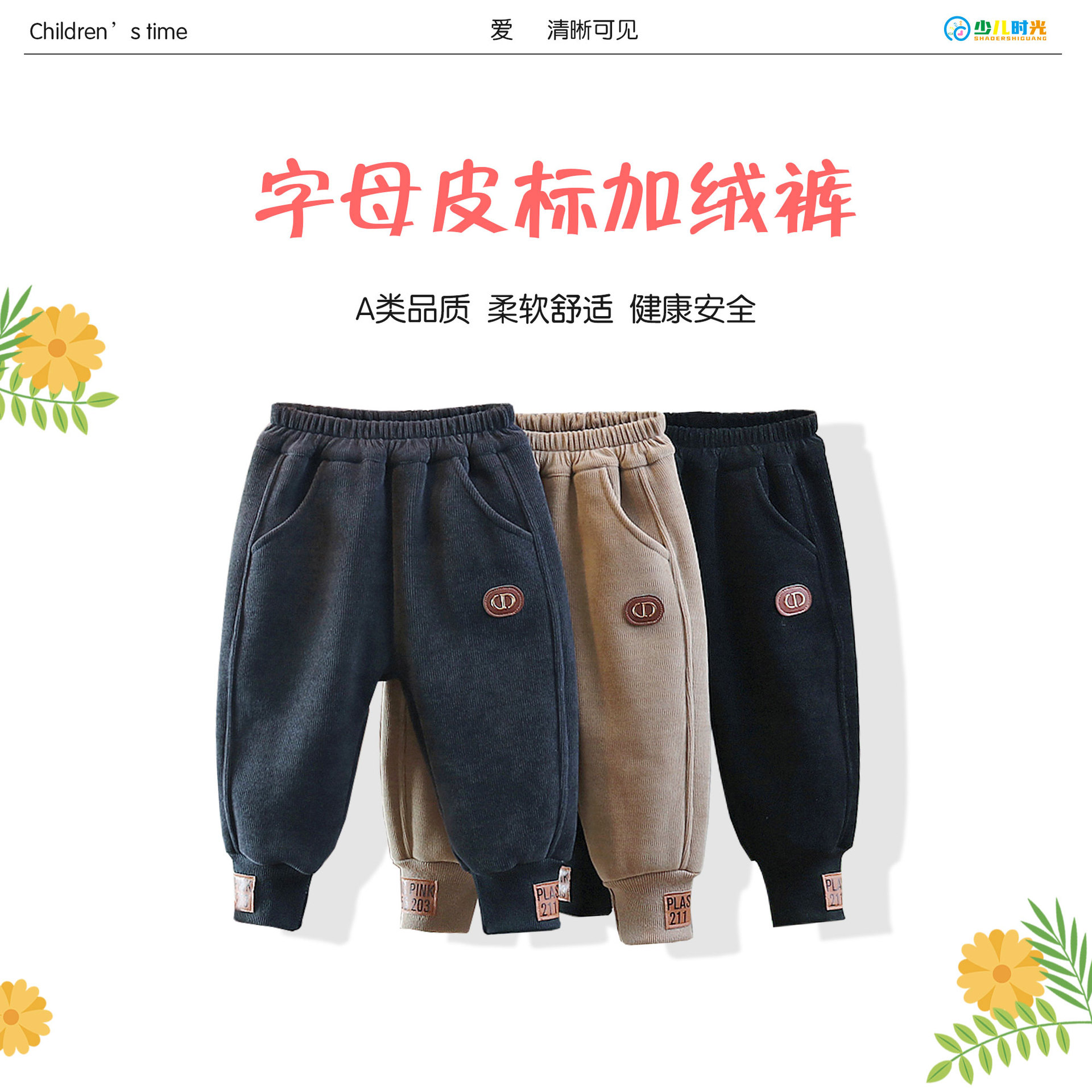 소년 기모 바지 가을과 겨울 남자 캐주얼 바지 두꺼운 원피스 양털 바지 어린이 스포츠 바지 외부 바지스토어 가기