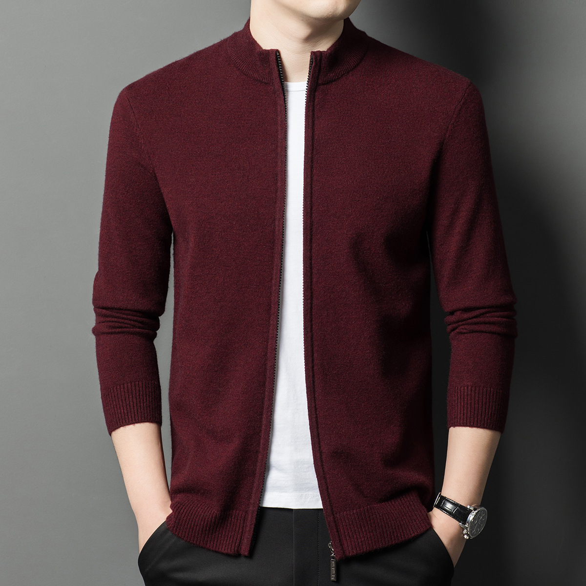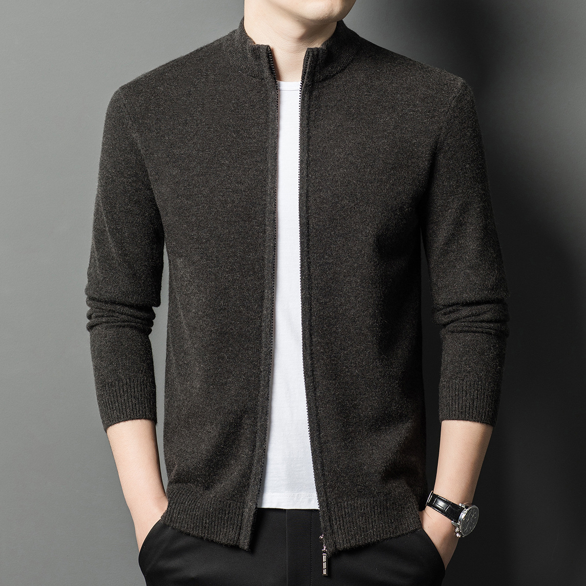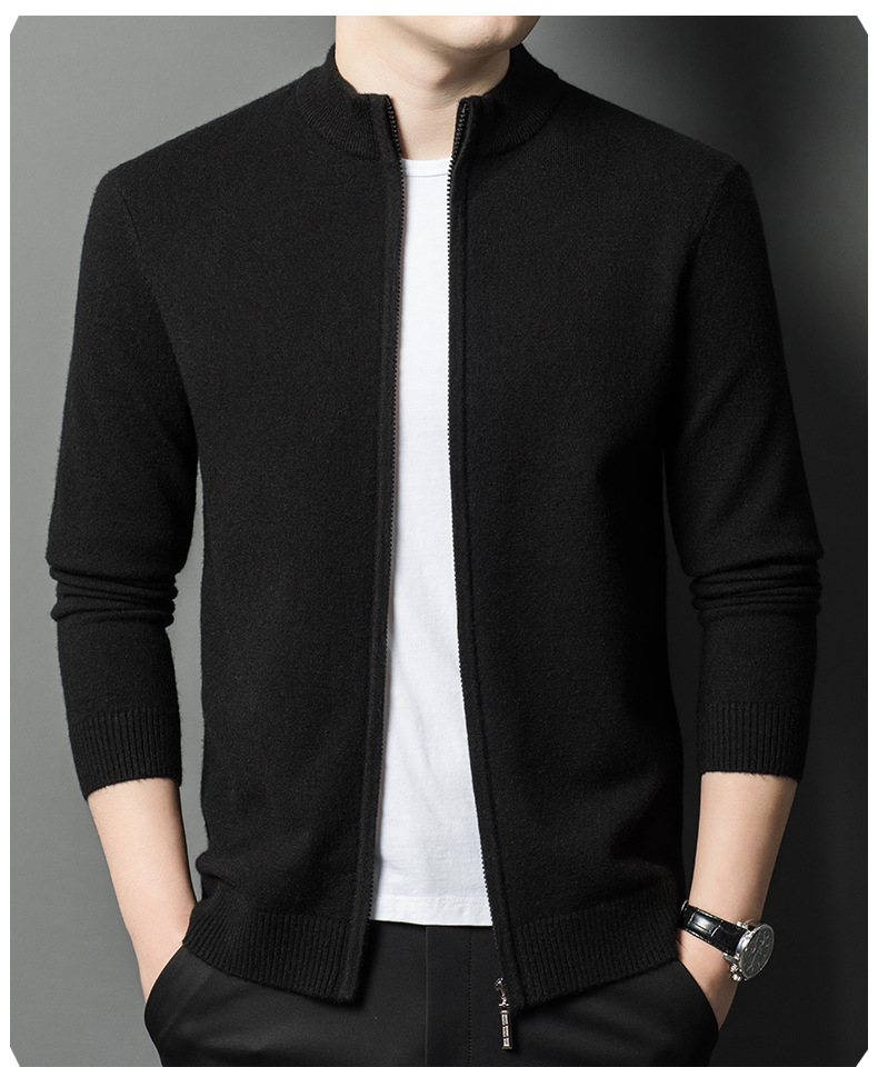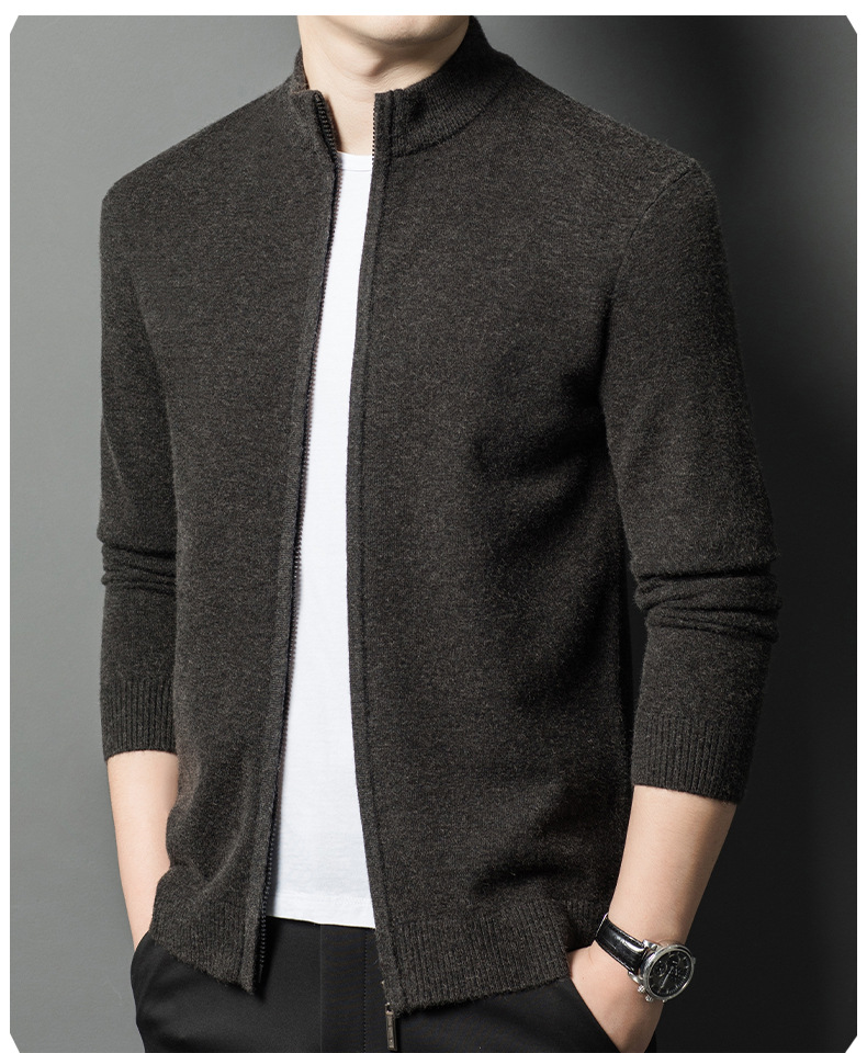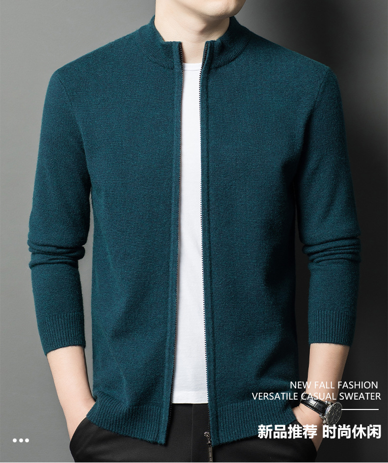 2024 겨울 새 기계 세탁기 남성용 니트 카디건 수직 칼라 두꺼운 캐주얼 중년 긴팔 재킷스토어 가기