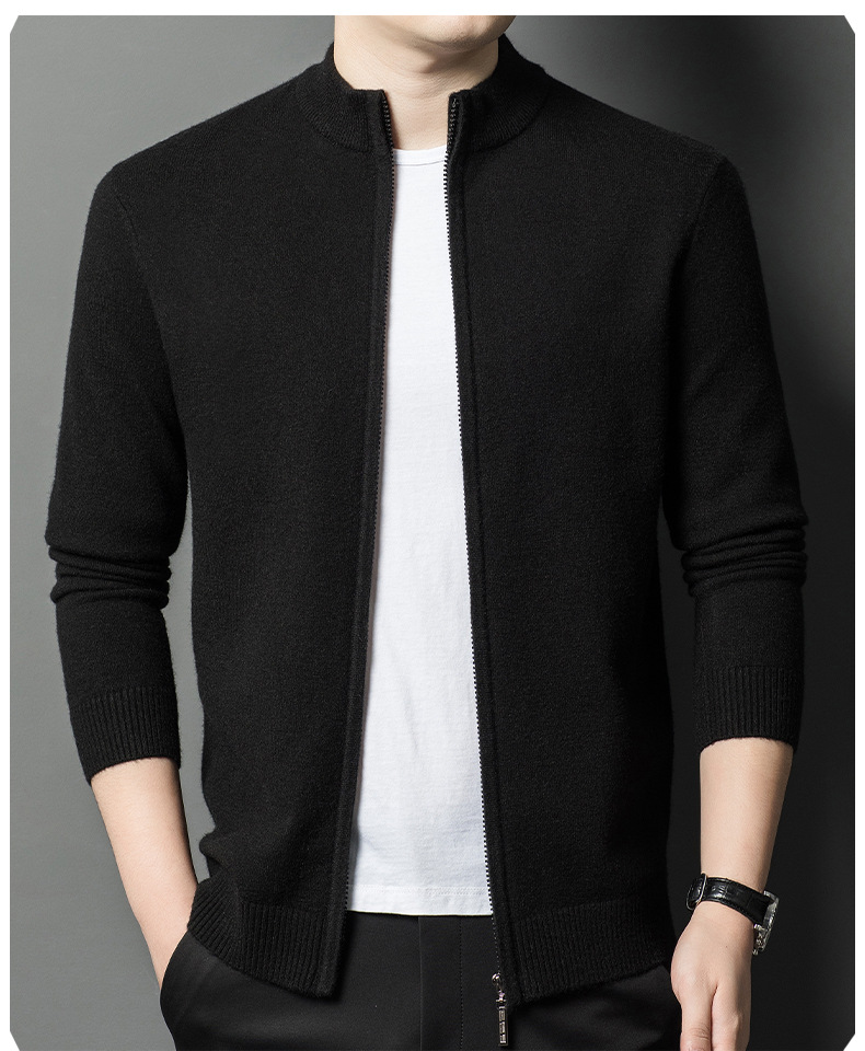 2024 겨울 새 기계 세탁기 남성용 니트 카디건 수직 칼라 두꺼운 캐주얼 중년 긴팔 재킷