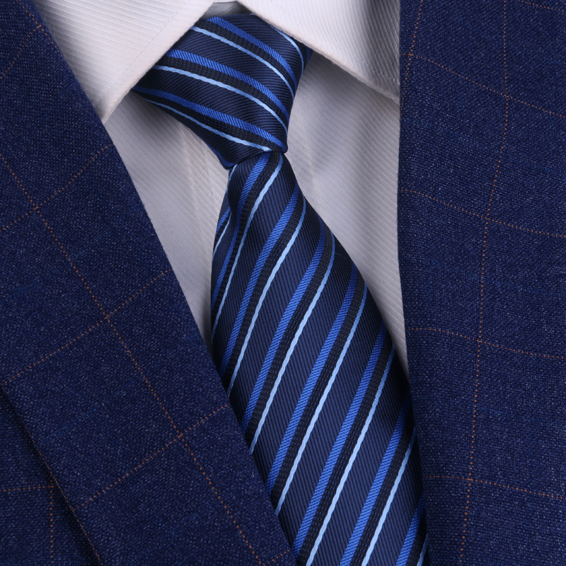 • (지퍼 없음) 8cm 파란색 줄무늬 넥타이