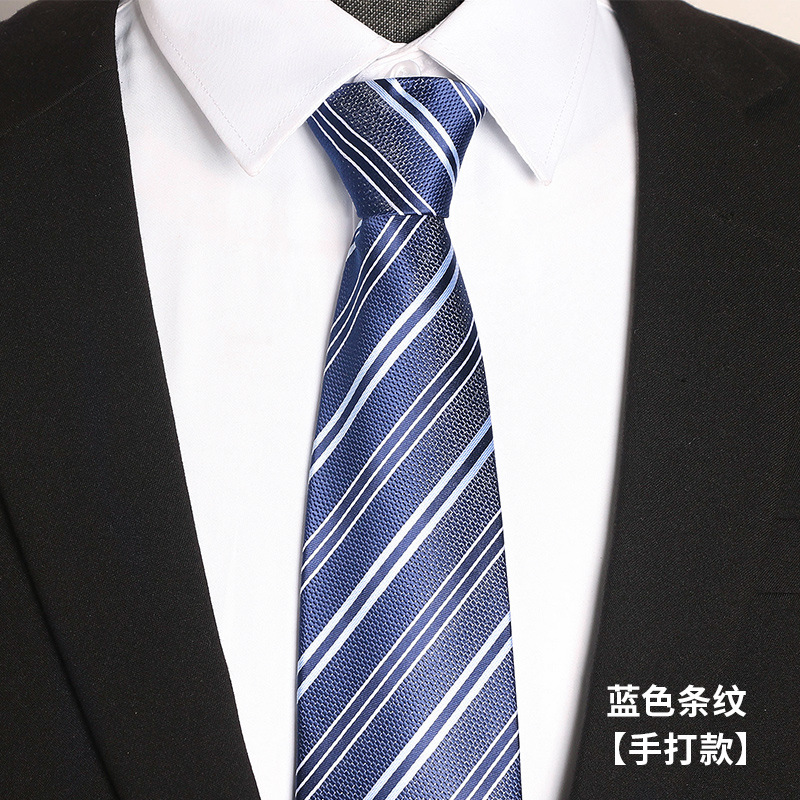 • (손으로 묶어주세요) 8cm 파란색 줄무늬 넥타이
