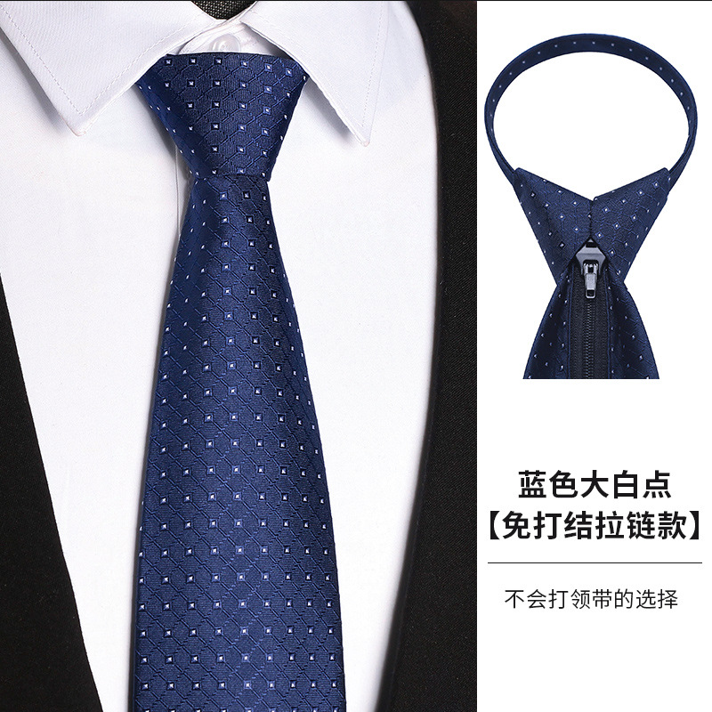 • (지퍼 없음) 흰색 점이 있는 파란색 넥타이 8cm