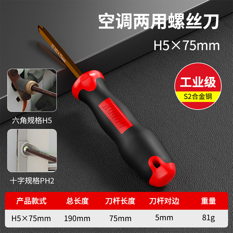 에어컨 육각형 스크루 드라이버 불소 오픈 앵글 밸브 이중 목적 유지 보수 특수 크로스 고경도 강한 자기 가정용 스크류 드라이버