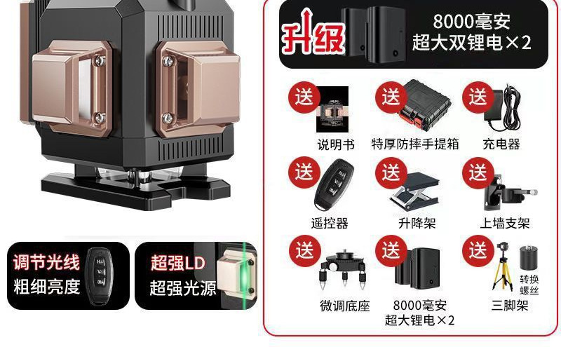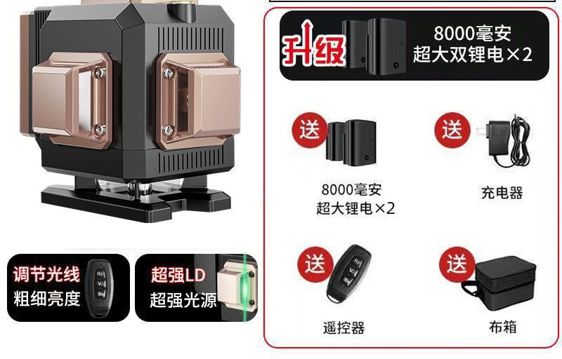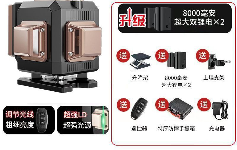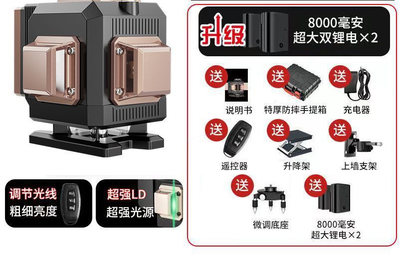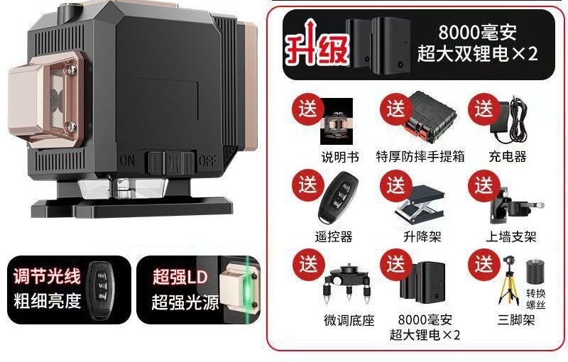 • 강한 빛 LD 녹색 빛 8 라인 + [두께 조절 가능] 듀얼 배터리 - 공식 정품 [정확한 측정] 독일 무브먼트