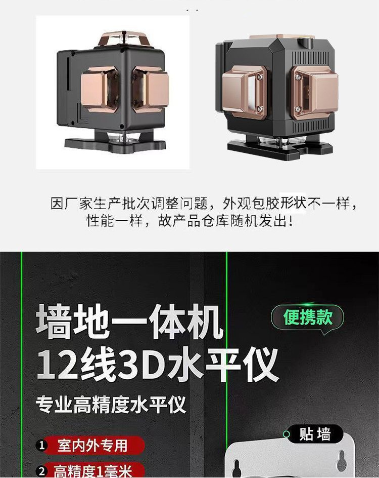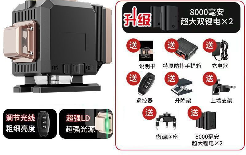 • 강한 빛 LD 녹색 빛 12 라인 + [두께 조절 가능] 듀얼 배터리 - 공식 정품 [정확한 측정] 독일 무브먼트