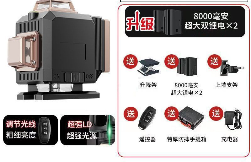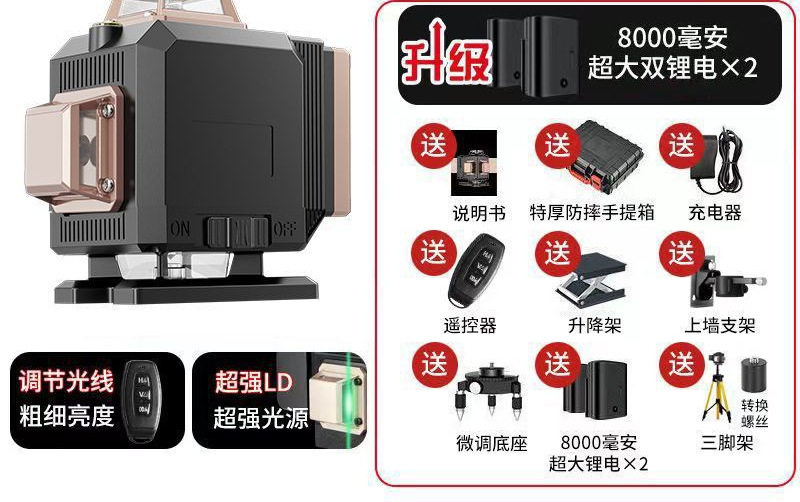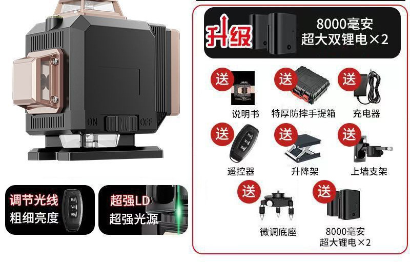 • 강한 빛 LD 녹색 빛 16 라인 + [두께 조절 가능] 듀얼 배터리 - 공식 정품 [정확한 측정] 독일 무브먼트