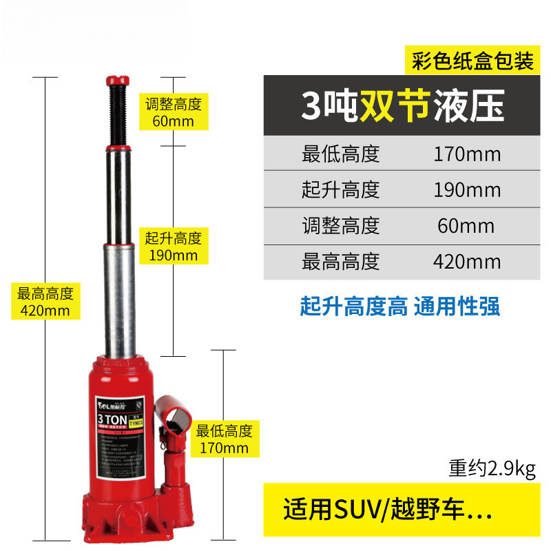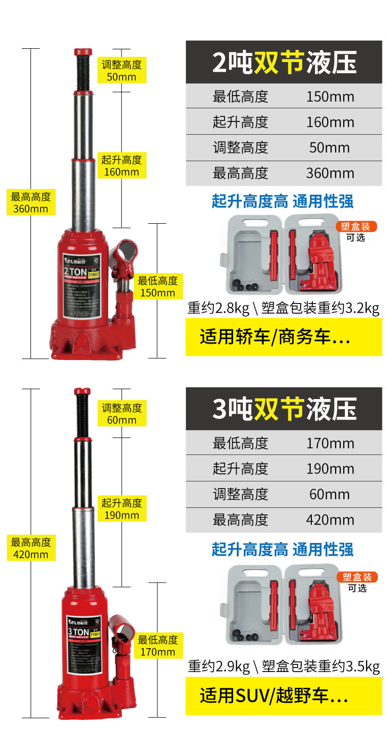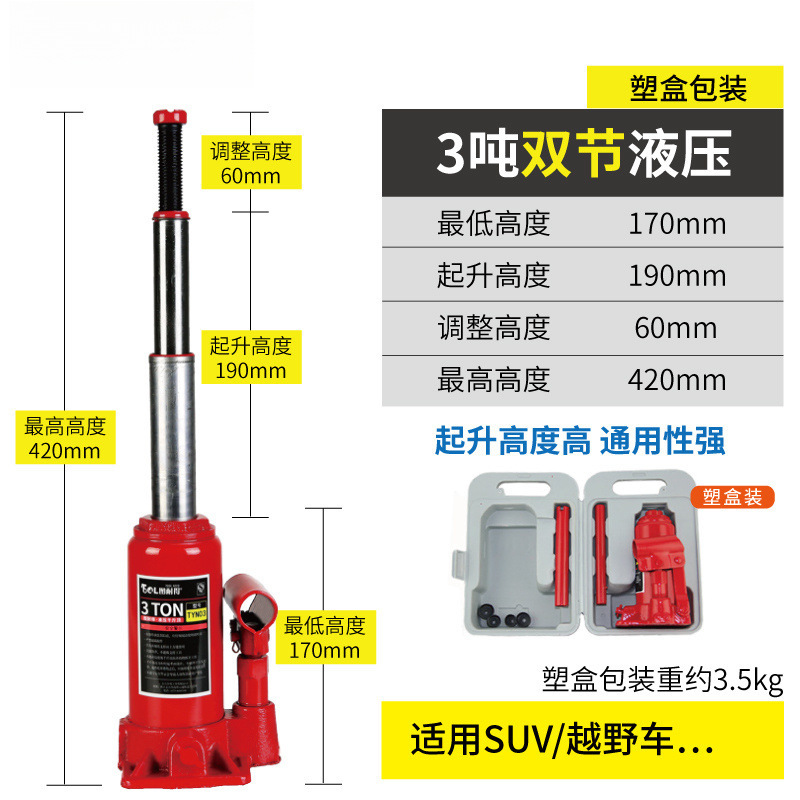• SUV에 권장되는 3톤 더블 섹션(수납 상자 포함)