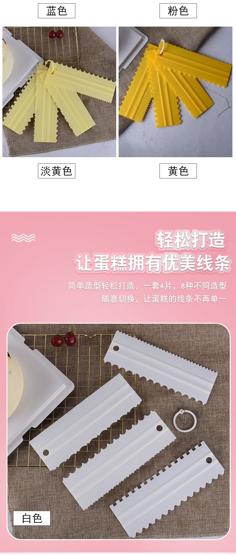 공장 도매 4 조각 크림 빗 플라스틱 스크레이퍼 DIY 케이크 모델링 장식 모델링 도구 세트